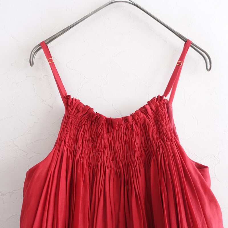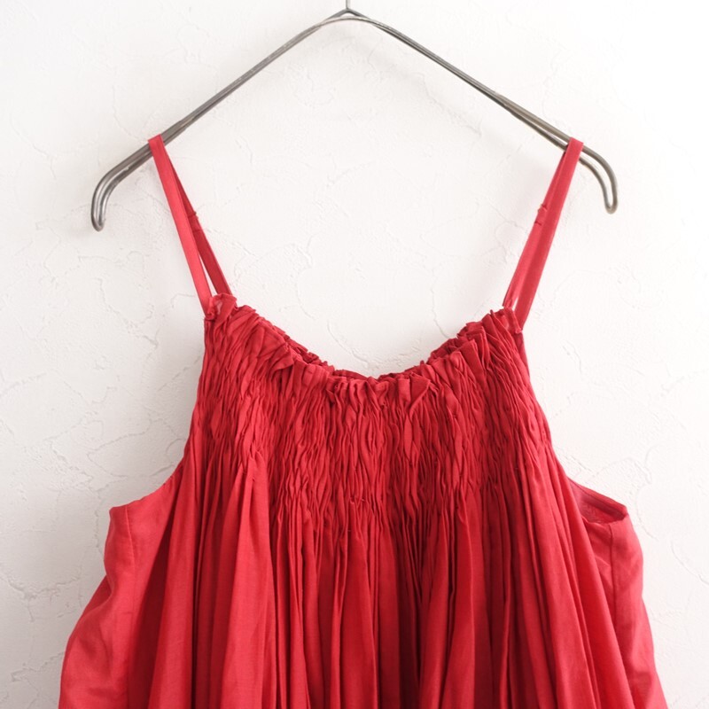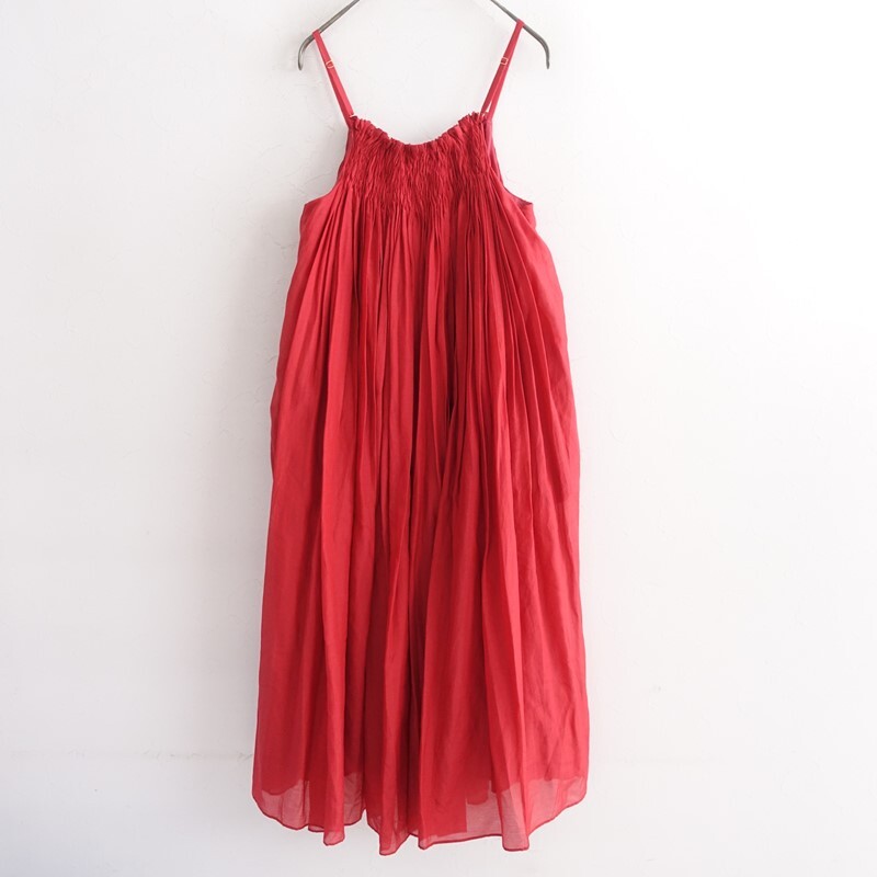 | 2025年春夏コレクション Hug O Warのコットンシルクスモッキングキャミドレスです。カラーはレッドです。上品な艶を配した軽やかな薄手コットンシルクの生地を使用。サラリとした清涼感のある裏地付きで仕立てられています。たっぷりと贅沢に生地を使用した、華やかなキャミソールドレスです。ハンドワークのぐし縫いで施されたシャーリングがポイントです。肩紐はアジャスター付き、両サイドにシームポケットがございます。定価(メーカー希望小売価格)49,720円の商品です。 |