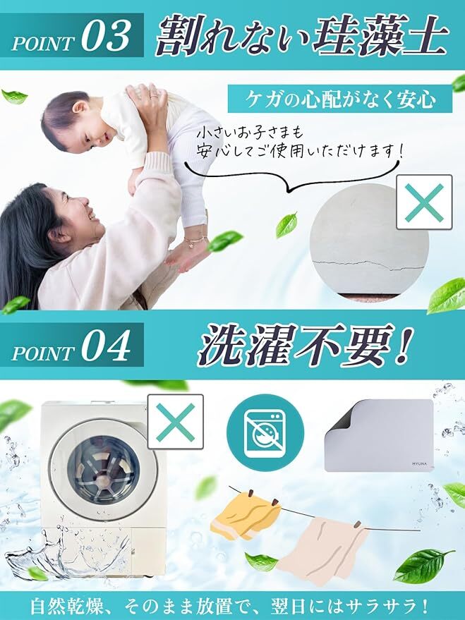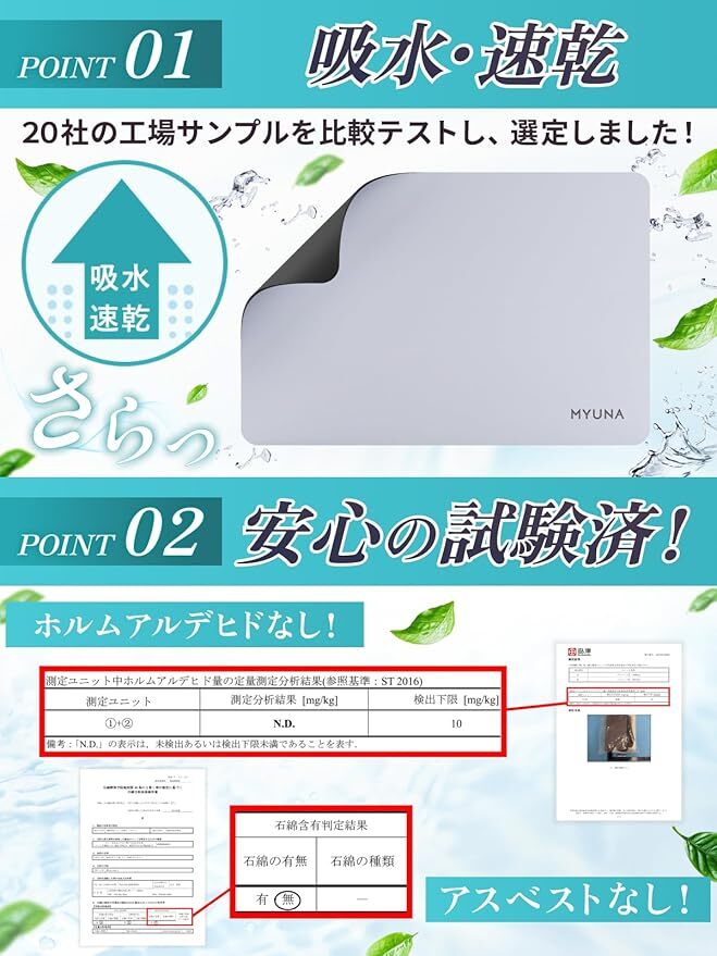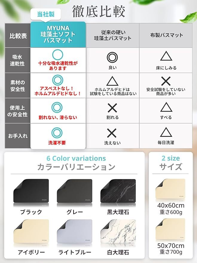 Amazon | MYUNA バスマット 珪藻土 ソフトタイプ 40 x 60cm 洗濯不要 バスルーム 足拭き吸水 速乾 収納簡単 滑り止め バスルーム 脱衣所 洗面所 (グレー)