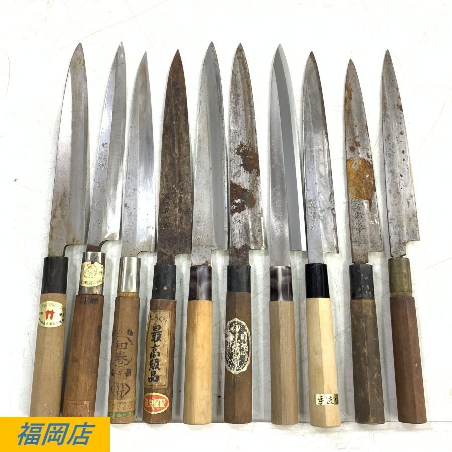 【まとめ売り】刺身包丁/柳刃包丁等の10本セット 堺佐助/宗丹/允義弘/源菊久/優駮/堺源義則/知春/宗丹/他 和包丁等*ジャンク品【福岡】