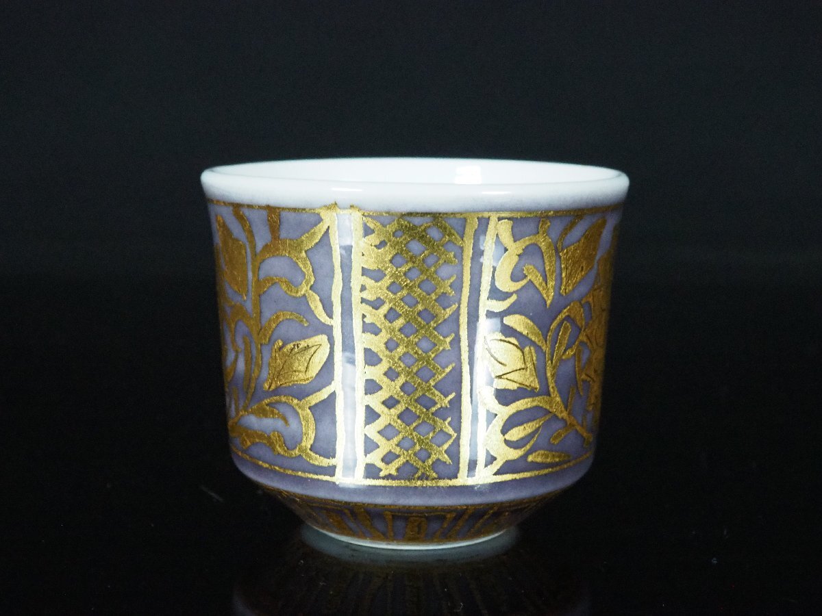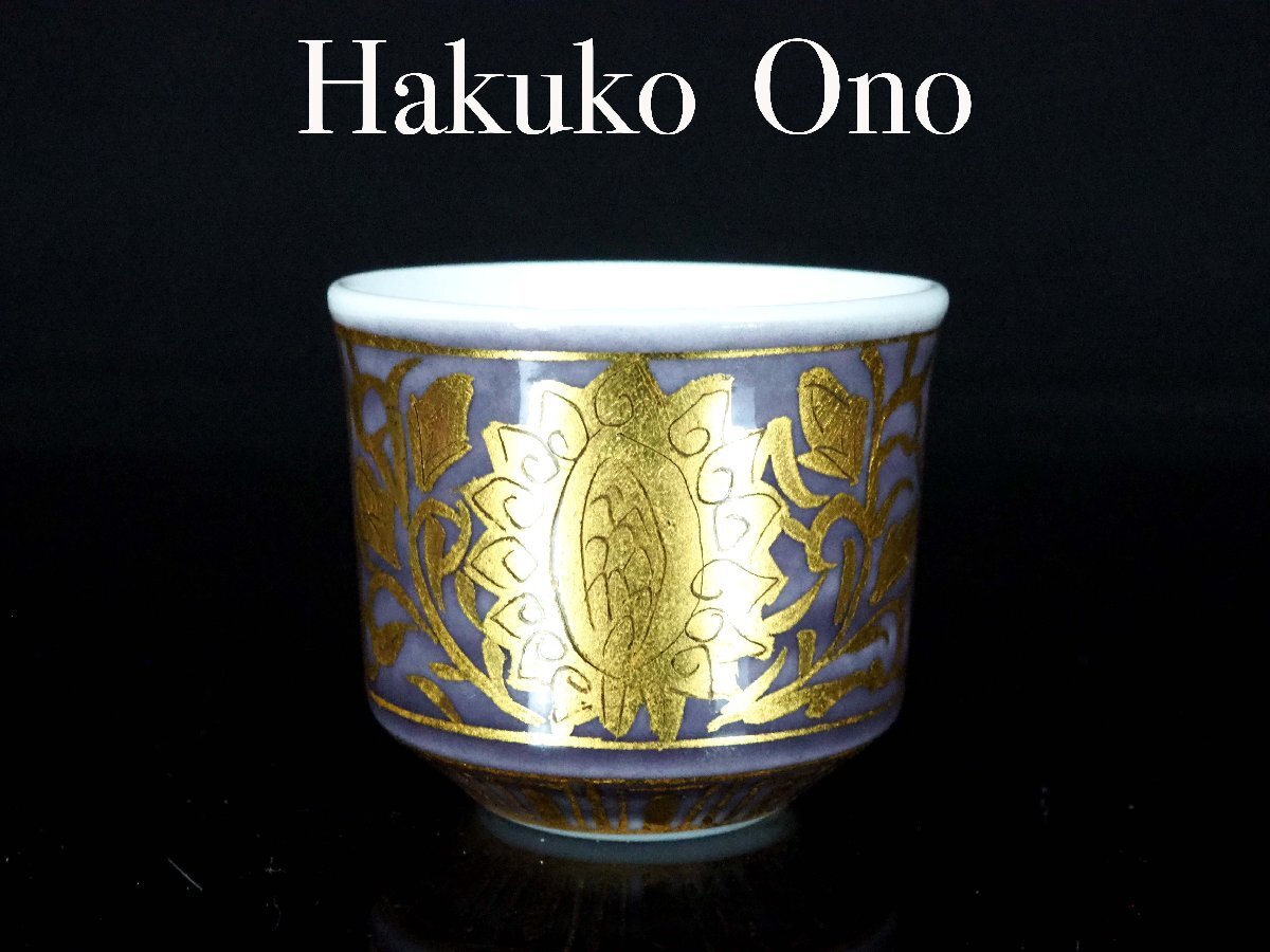 【GK】小野珀子 金襴手ぐいのみ 共箱 共布 栞 本物保証!