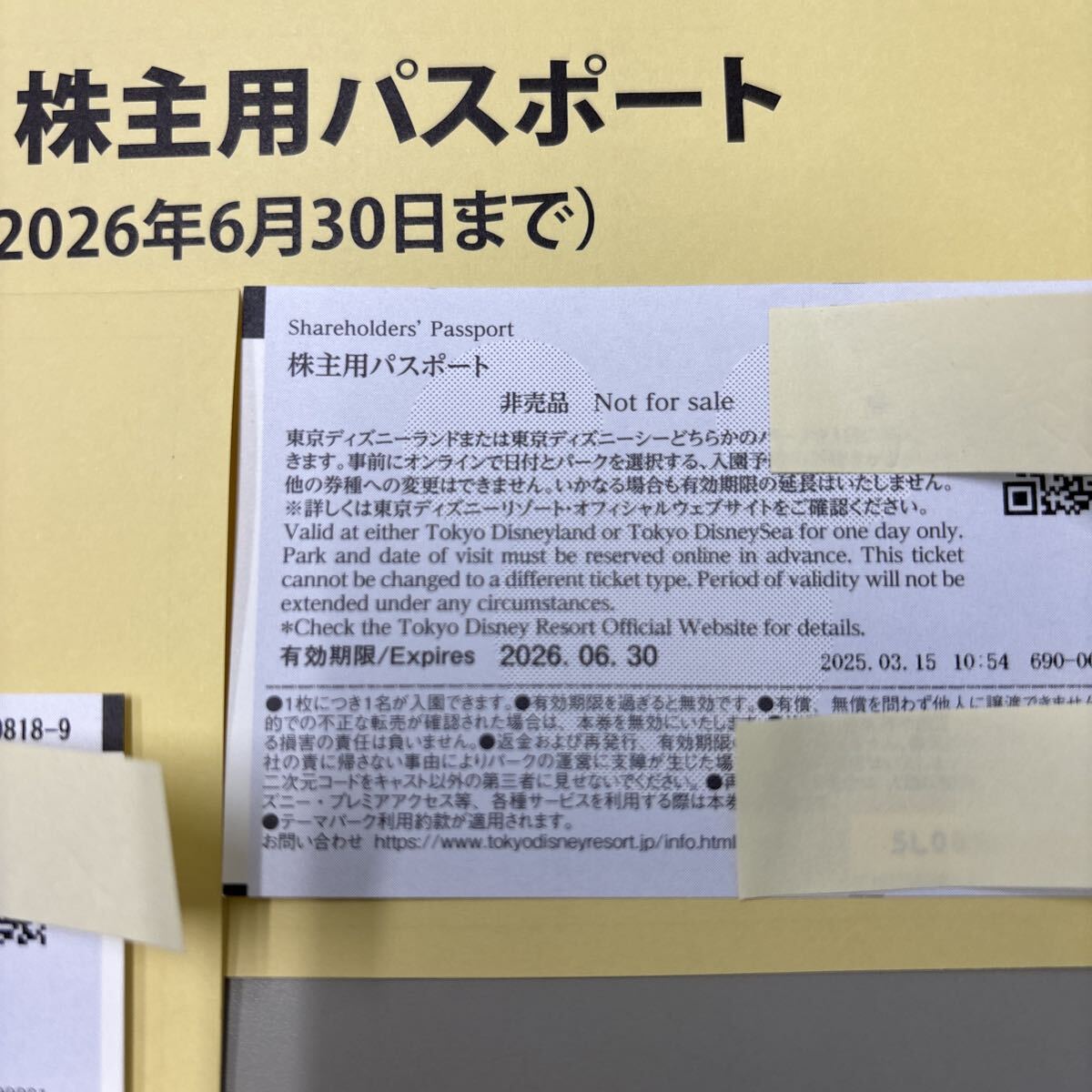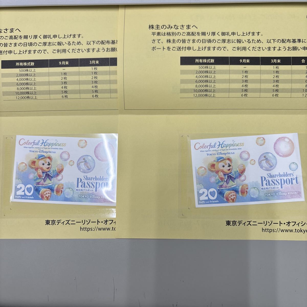 東京ディズニーリゾート株主優待2枚
