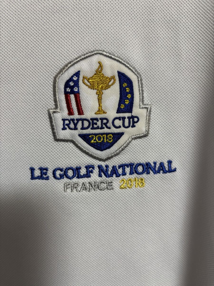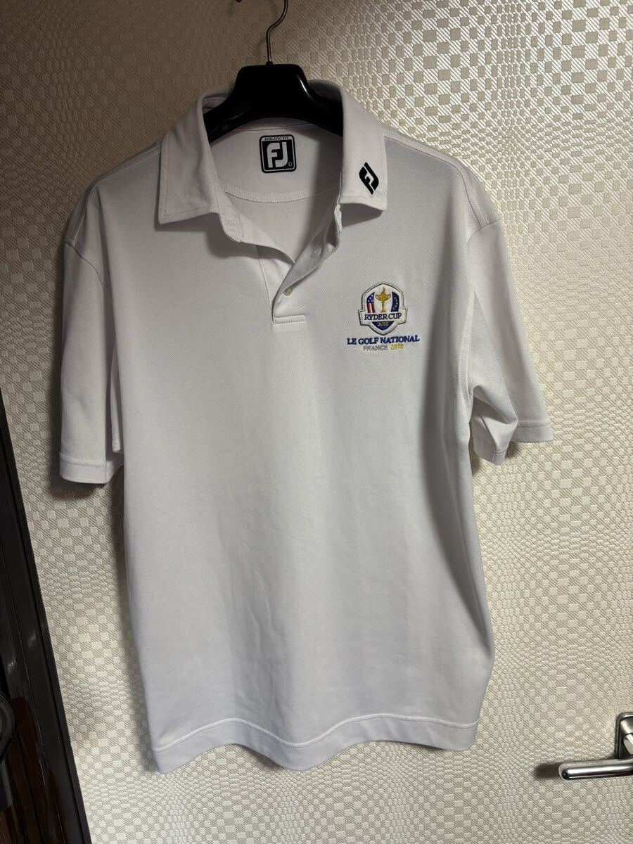 ライダーカップ2018フットジョイ半袖ドライポロシャツです。サイズ海外 L表記で平置き脇下身幅58、着丈73肩幅51センチ位です。