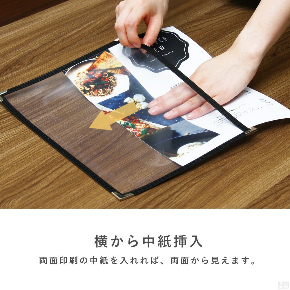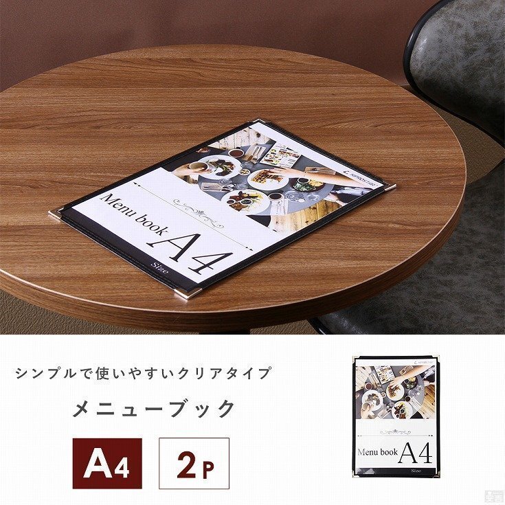 | 説明 | ・飲食店などで使用されるメニューブックです。 ・メニュー以外にも資料などを入れてクリアファイルとしてもご使用頂けます。 ・両面印刷の中紙を入れると両方から見れます。 ※中紙は付属しておりません。 |