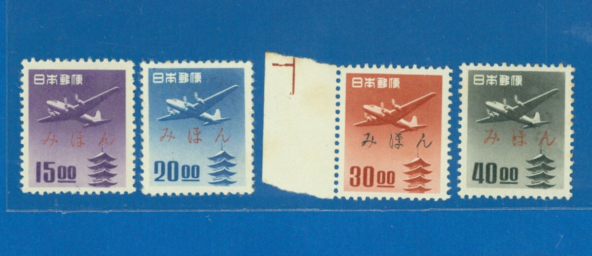 普通切手 みほん字入り 航空切手 五重塔0付 4種です。