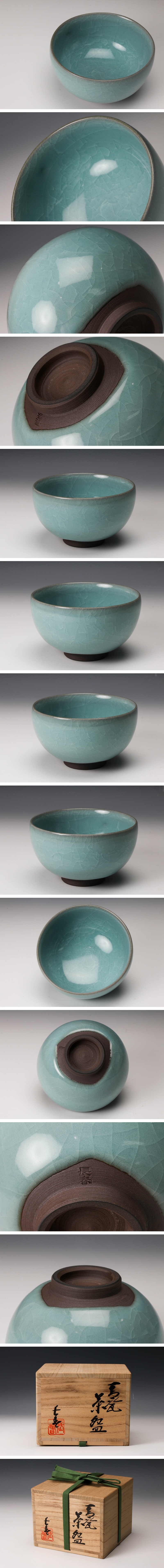 【佳香】小笠原長春 青瓷茶碗 共箱 茶道具 本物保証