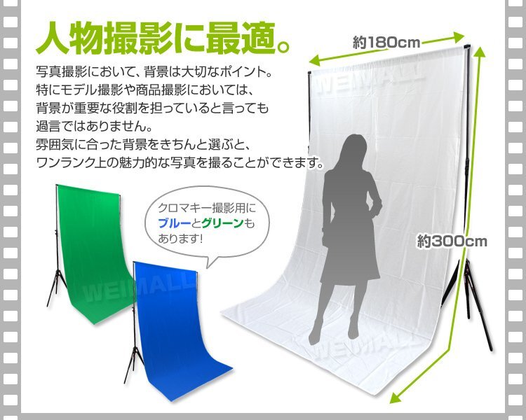 モデル撮影または大型商品に最適な1.8m×3mの大型サイズの撮影用背景布です。