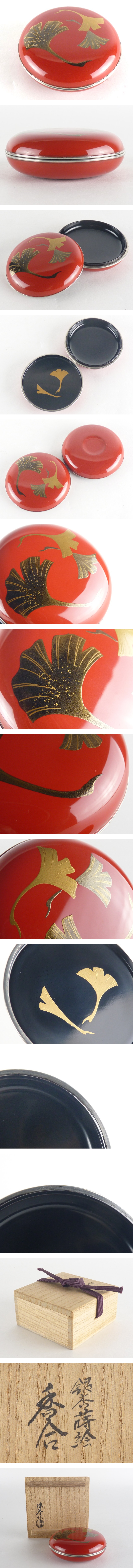 【扇屋】新谷漆峯 作「銀杏蒔絵 香合」銀縁 共箱 茶道具