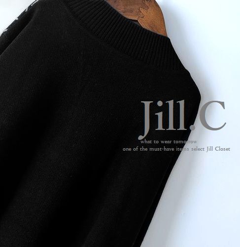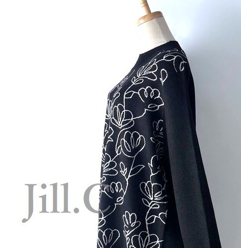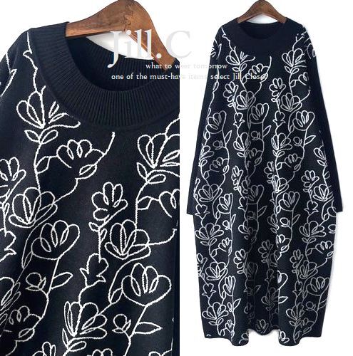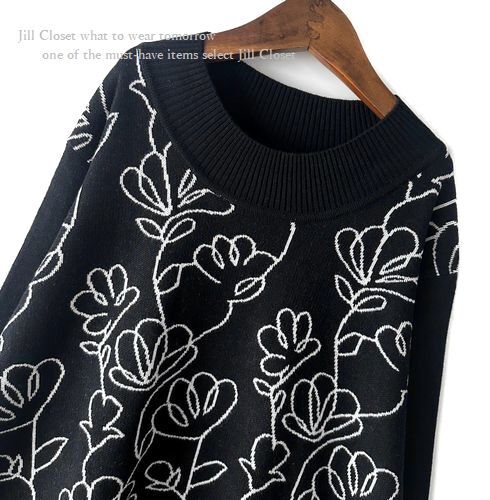 新品L~LL【送料185円】伸縮◎ハイセンスな装い♪FLOUR&LEAF ジャガード* ハイゲージニット*プルオーバー*ワンピース8025.BLACK