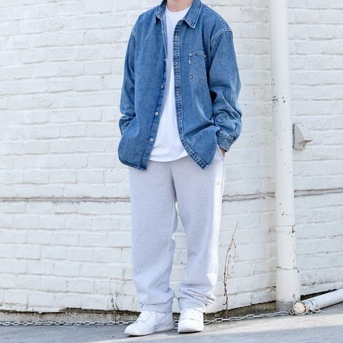 ■当コレクションらしいルーズシルエットで、90年代を感じるストーンウォッシュカラーのデニムシャツ。