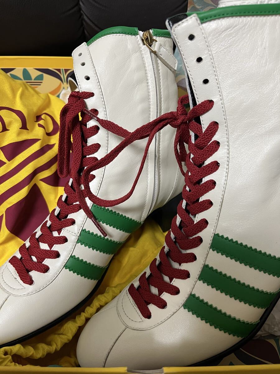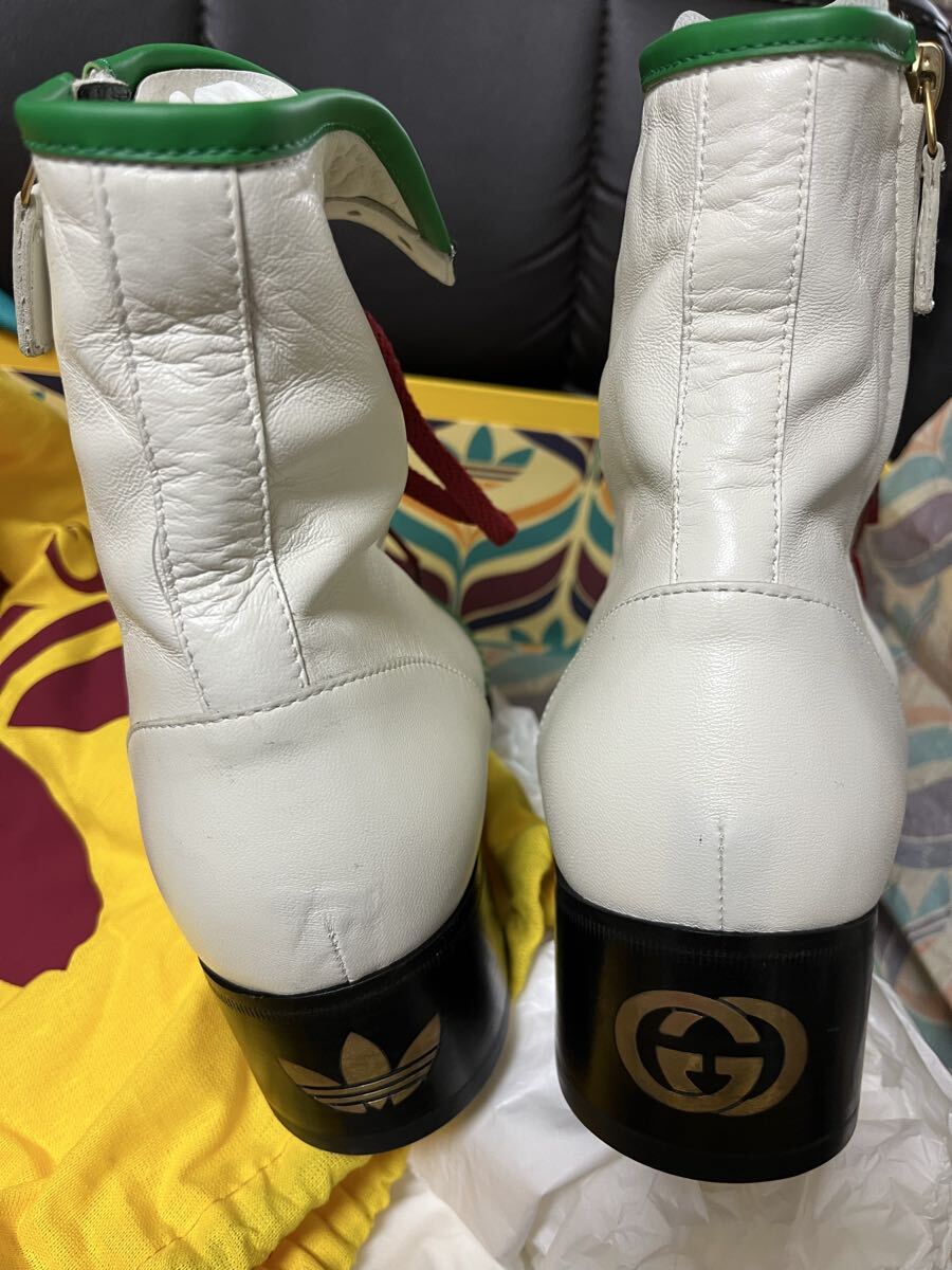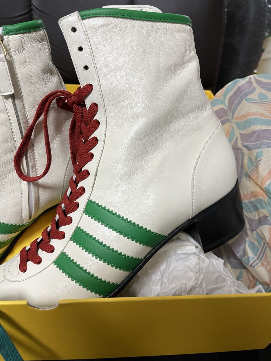 タイプ)gucci × adidas アディダス 714871 スリーストライプス サイドジップ レザー ブーツ