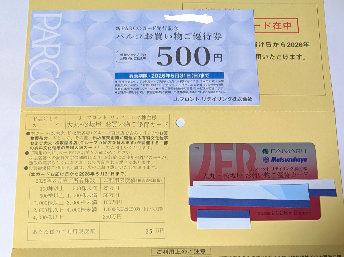 株主優待 大丸・松坂屋お買い物ご優待カード