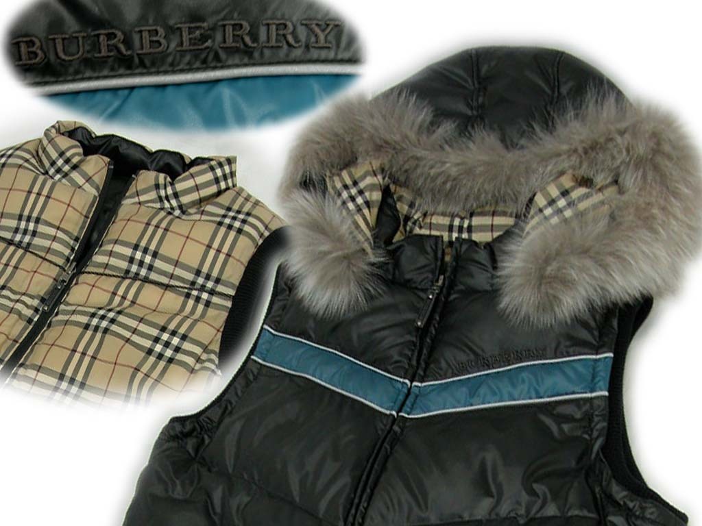 ★新品未使用★BURBERRY LONDONバーバリー★フードブルーフォックス付・チェック付★リバーシブルダウンベスト★男女兼用★です。