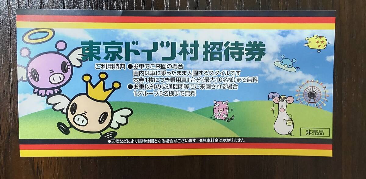 東京ドイツ村招待券 2026年12月31日まで利用可能 車1台最大10名分(車以外5名)