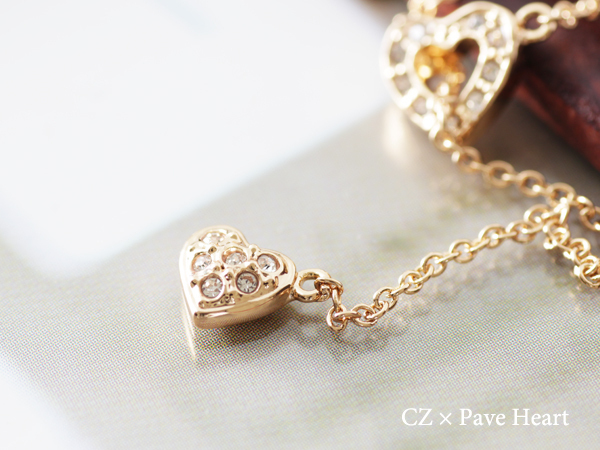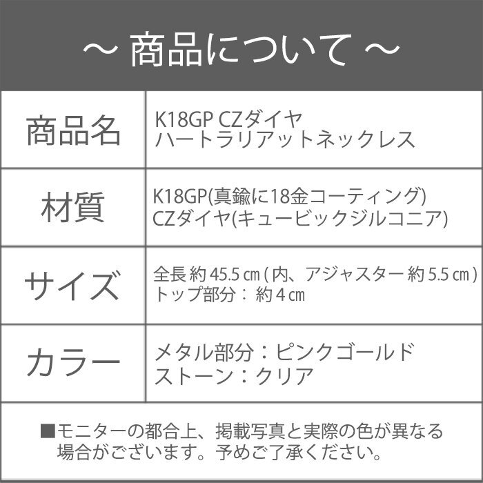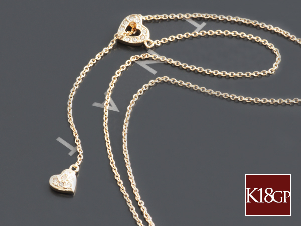 ネックレス レディース ハート Y字 ラリエット 18金 18kコーティング ピンクゴールド 女性 / K18GP CZダイヤ ハートラリアットネックレス