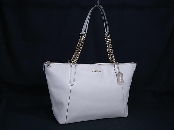 1円 COACH コーチ F37201 レザー ハンドバッグ トートバッグ レディース アイボリー系 GA6635