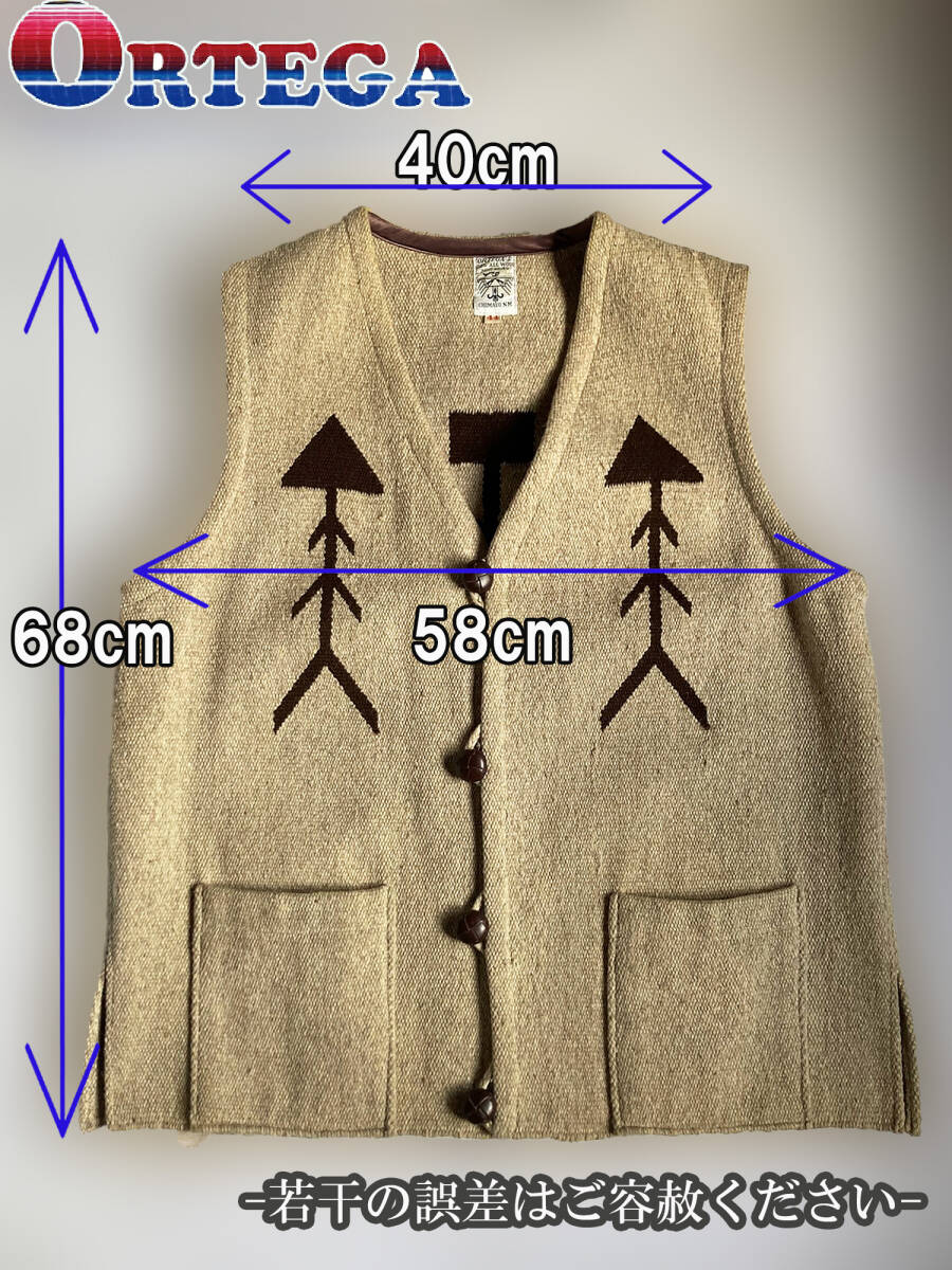 オルテガ ORTEGA'S チマヨ ウール ベスト 希少 レア グレーMIX スクエアタイプ 44