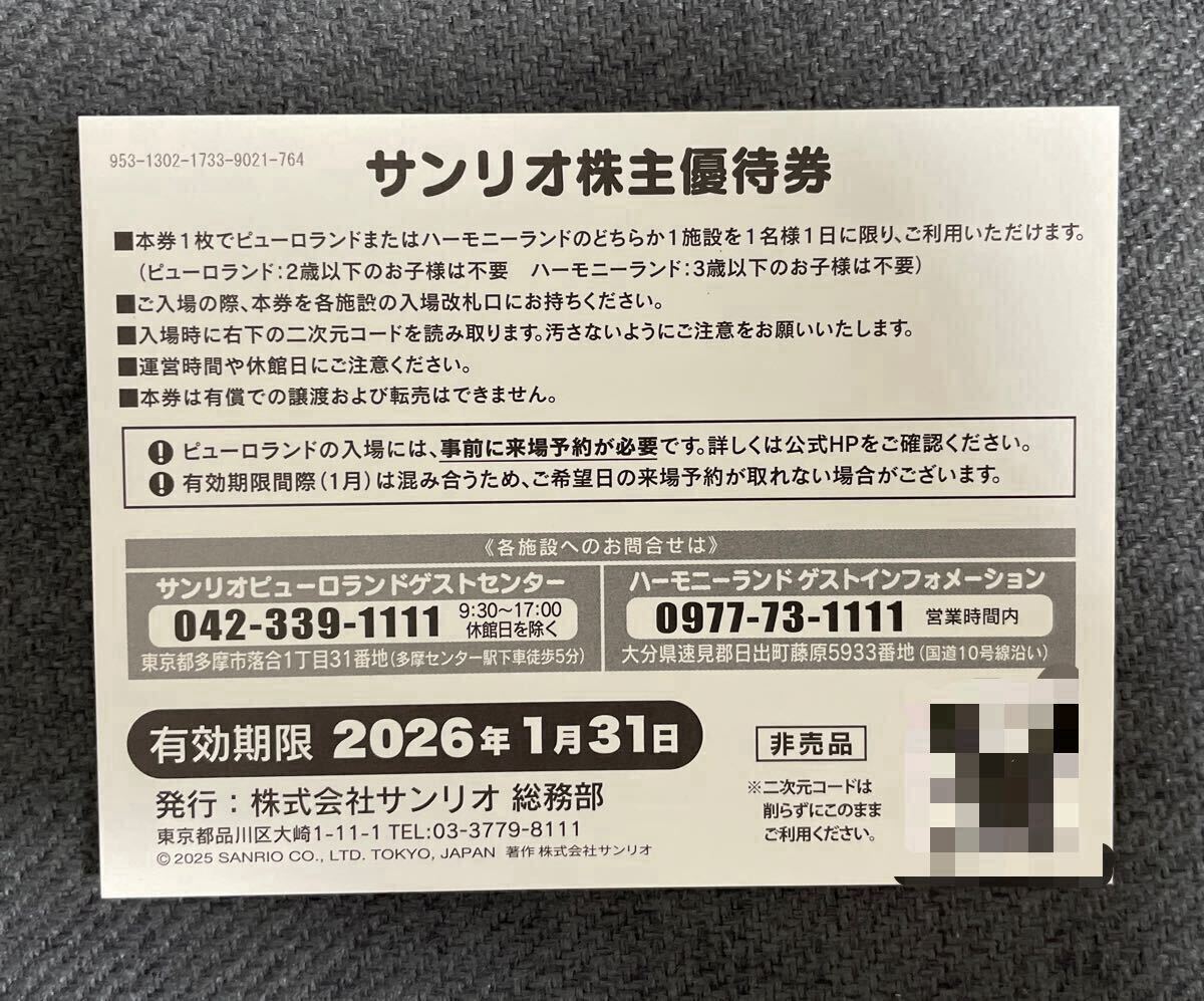 ①サンリオ株主優待券1枚