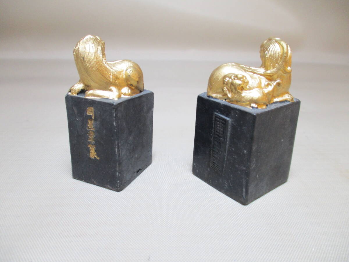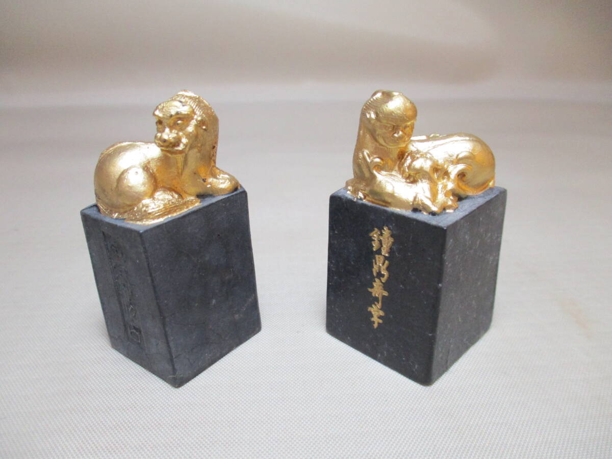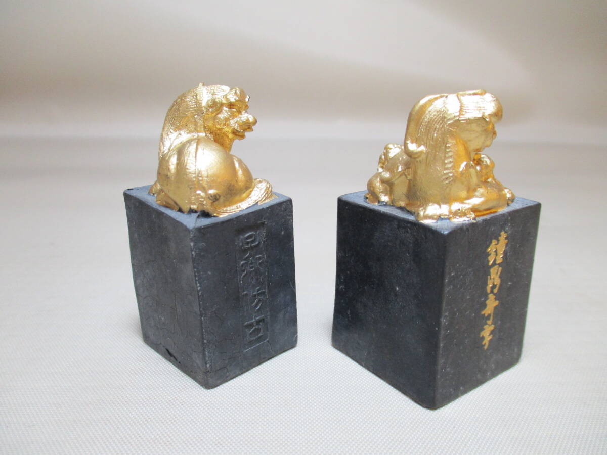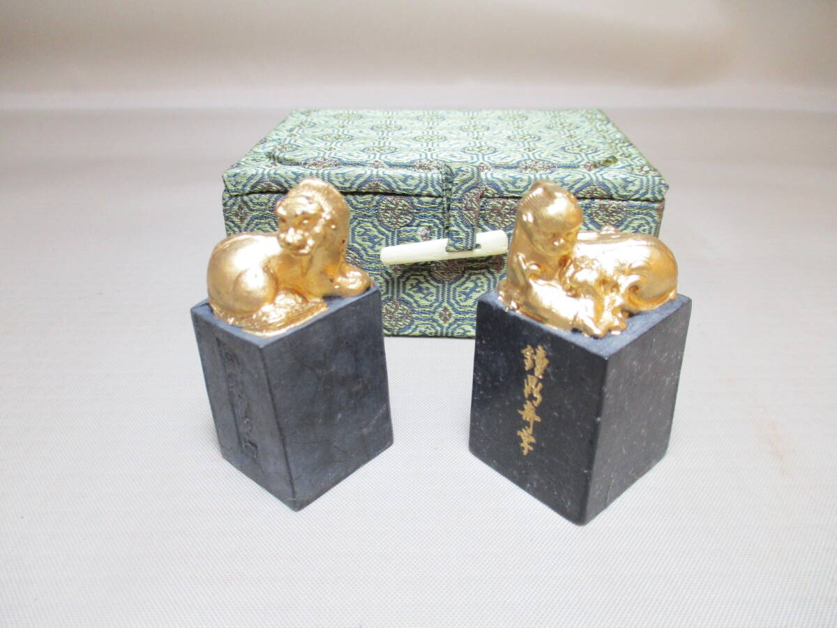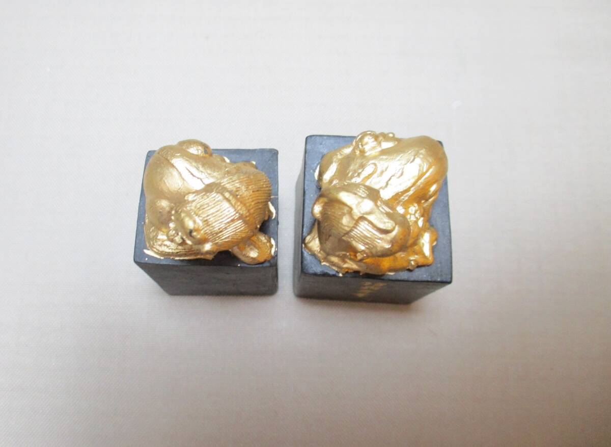 L129*中国書道具* 唐墨 夫婦獅子 印型墨 1対 /計79g /未使用 /オブジェ置物【送料込】