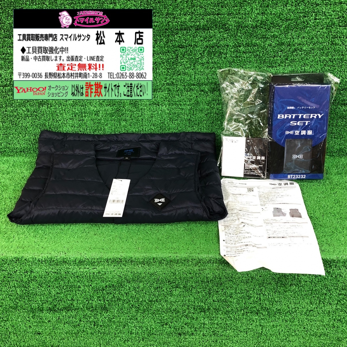 | 商品説明 | ◇メーカー サーマルギア ◇商 品 名 発熱防寒ベスト(ネイビー) 空調服バッテリーセット 空調服変換アダプターケーブルセット ◇型 番 TG22102 BT23232 OP23540 ◇状 態 未使用品です。外袋に穴があります。 保管に伴うパッケージの傷やお汚れあるかと思われます。 写真撮影の為に開封致しました。折り畳んで発送させて頂きますので折りシワなどつく可能性がございます。ご了承下さいませ。 お写真にて状態よくよくご確認の上、ご落札下さいませ。 ※陸路輸送となります。 場所によってはお届けに時間がかかる場合があります。 ※画像にあるものが全てとなります。 ※ごくまれに入札中に店頭にて販売となり売り違いが発生してしまう場合がございます。その場合は出品者都合での出品キャンセルをさせていただくことがございます。予めご了承ください。 【詐欺サイトにご注意ください】 日頃より当店をご利用いただき、誠にありがとうございます。 この度、当社の出品商品が、当社とは関係のない詐欺サイト上で掲載されていることを確認いたしました。当社の正規販売はYahoo!ショッピングおよびYahoo!オークションのみであり、これら以外のサイトとは一切関係がございません。 【お客様への重要なお願いとご注意】 詐欺サイトでのご購入は、個人情報や金銭の被害に繋がる恐れがあります。 不審なサイトには絶対にアクセスせず、個人情報の入力やご注文はお控えください。 被害に遭われた際は、最寄りの警察署または消費者センターにご相談ください。 万が一被害に遭われてしまった場合、誠に申し訳ございませんが、当社では被害に関する対応はいたしかねますので予めご了承ください。 お客様にはご心配をおかけいたしますが、ご理解ご協力のほどお願い申し上げます。 ★★★工具専門スマイルサンタ松本店 ヤフオク出品中です!!★★★ ★★★『工具専門スマイルサンタ松本店のヤフオクはこちら』★★★ 【ゆうパック 全国800円 (沖縄:1400円)】 【ヤマト運輸 全国1100円 (沖縄:1600円)】 どちらか一方を落札後、ご選択頂きます。 | 出品店舗 | スマイルサンタ 松本店 |
