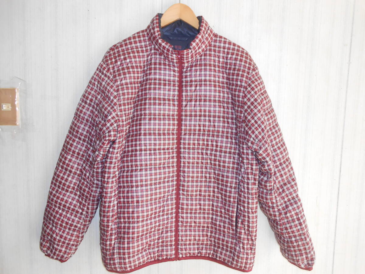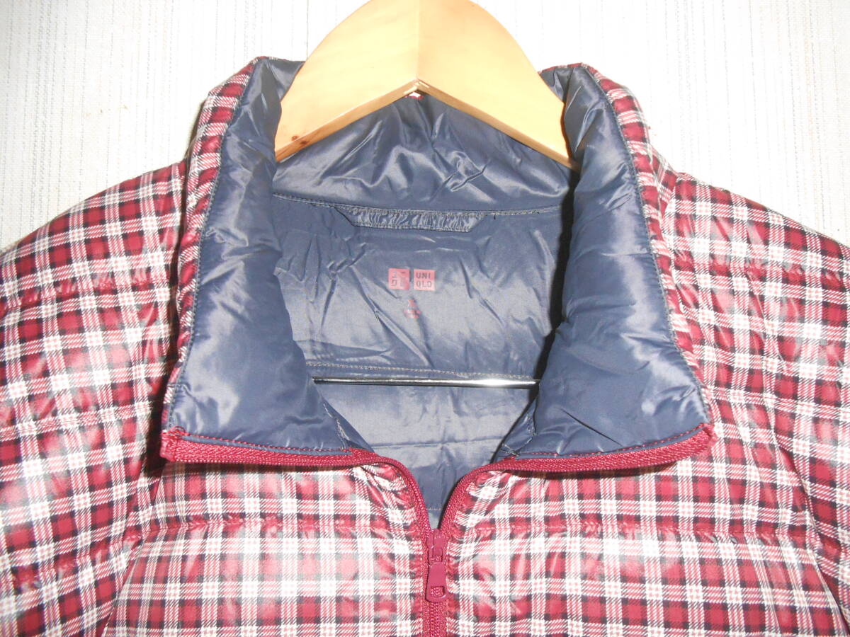 A225美品ユニクロウルトラライト軽量ダウンチェック柄ジャンバーXL赤女性用