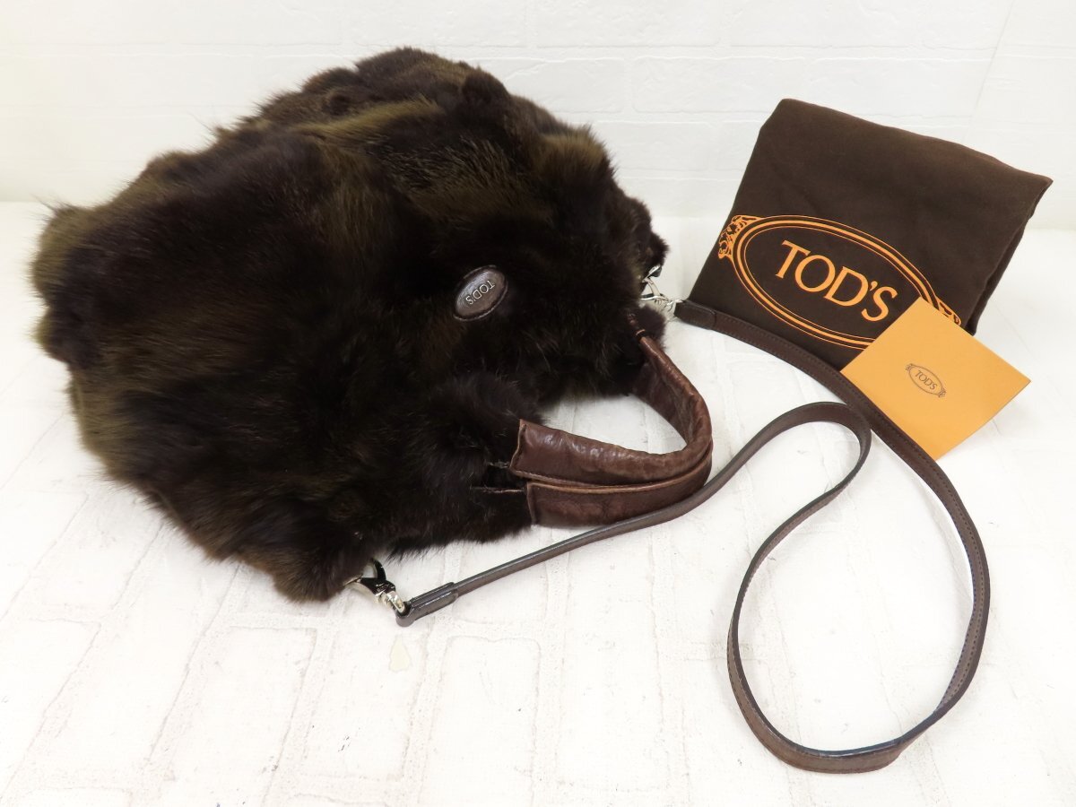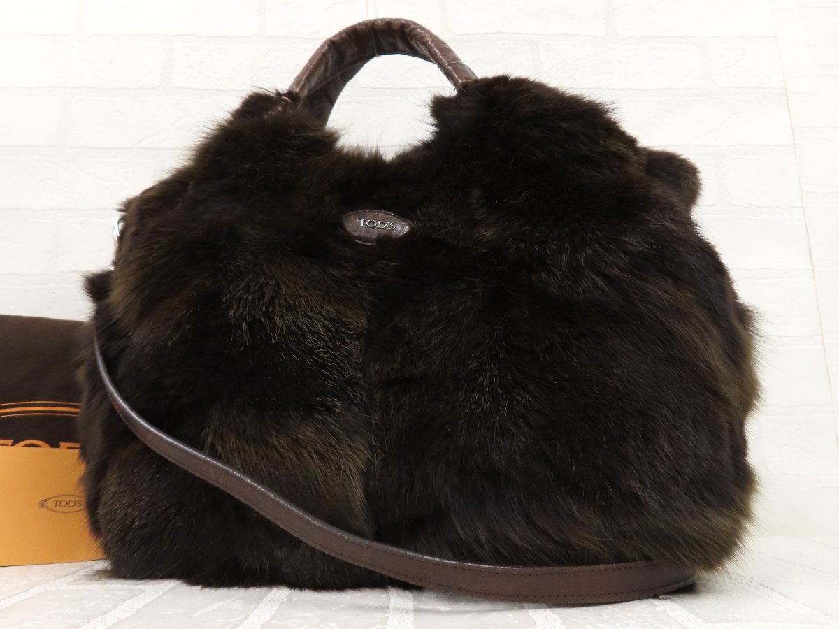 ◆美品◆TOD'S トッズ◆ファー カーフ レザー 本革◆2way ハンド ショルダー バッグ◆ブラウン シルバー金具◆斜め掛け◆ロゴ金具◆A14699