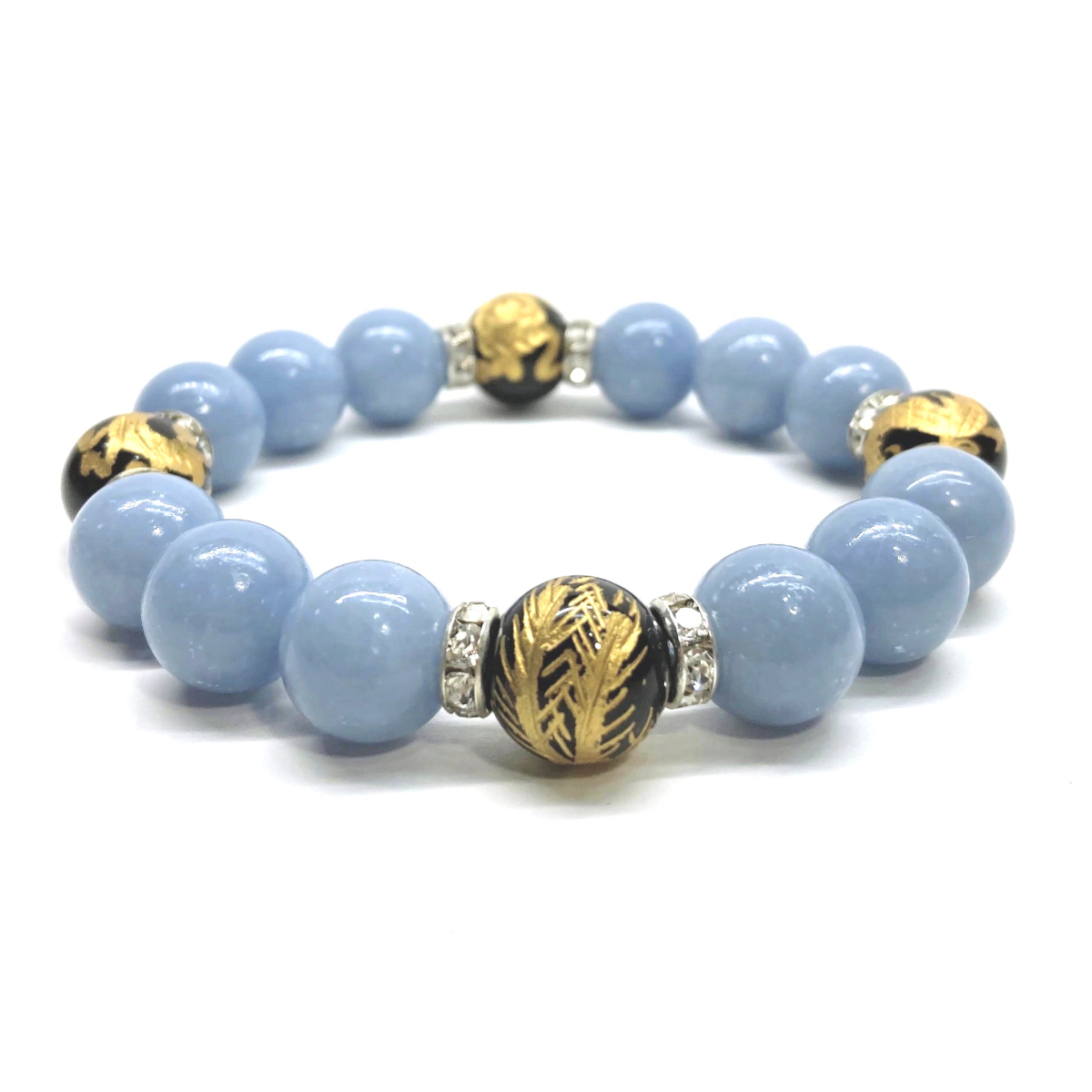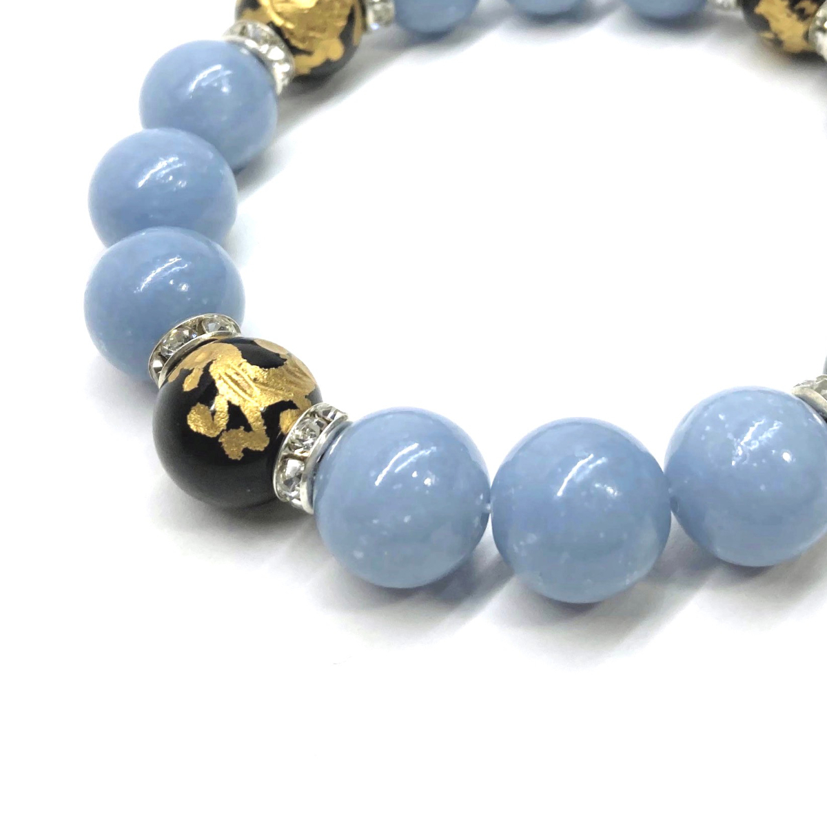 こちらは、四神獣金彫オニキとエンジェライトを組み合わせたパワーストーンブレスレットです。四神獣は、中国の伝説で4つの方向(東西南北)を守護する神聖な神。四神獣、厄災から身を守り、多くの運気を呼び込むと言われております。石大きさは程よくインパクトのある12mm玉で内周 約17cmです。 数に限りがございますので気になる方はお早めにどうぞ。
