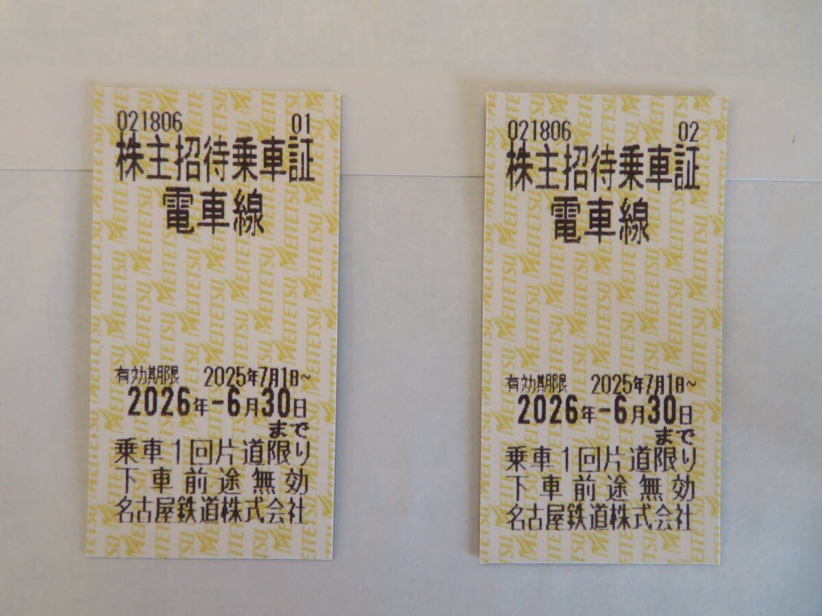 名鉄株主優待券2枚です。乗車1回片道限りです。期限は2026年6月30日です。普通郵便で送料負担します。価格は1セット2枚の価格です。