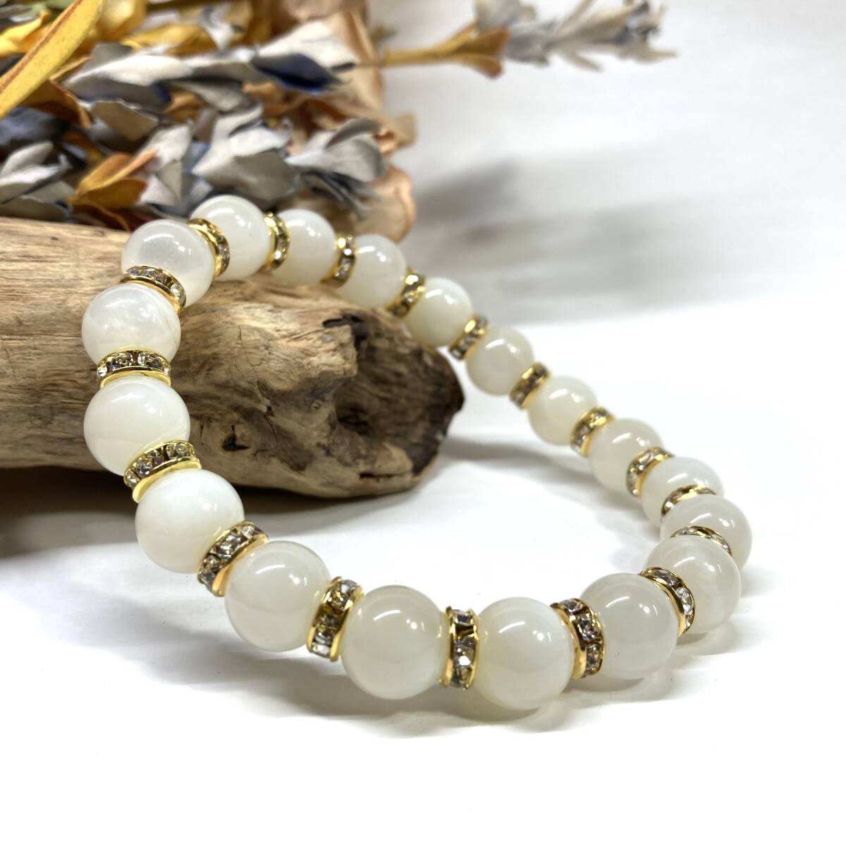 ムーンストーン パワーストーン ブレスレット 10mm 天然石ブレス (ゴールド) 数珠ブレス メンズ・レディース 男性 女性 幸運 開運 浄化 ☆