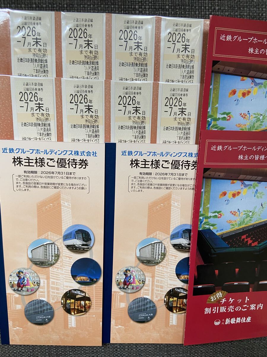 近鉄グループホールディングス 株主優待 の近畿日本鉄道線沿線招待乗車券8枚(4枚×2冊) +株主様ご優待券2冊です。