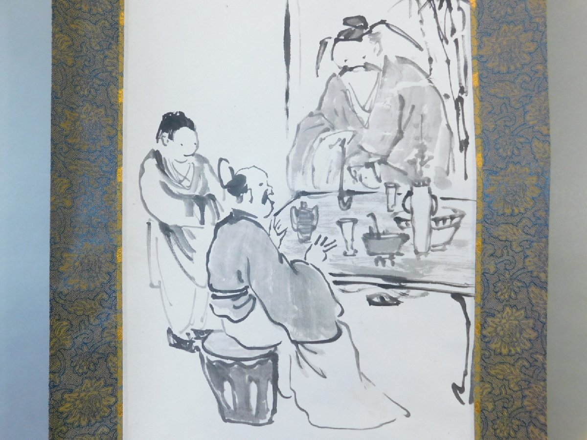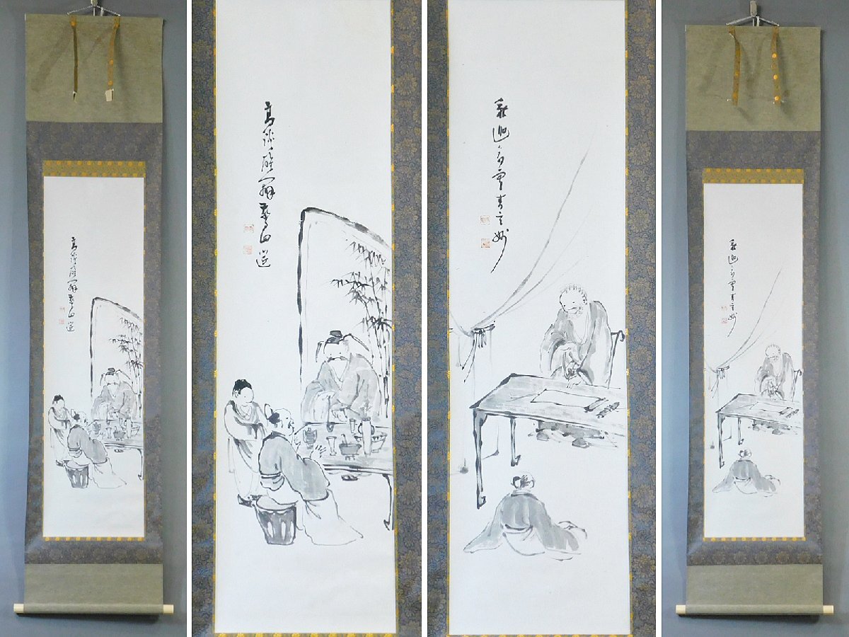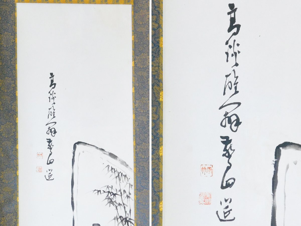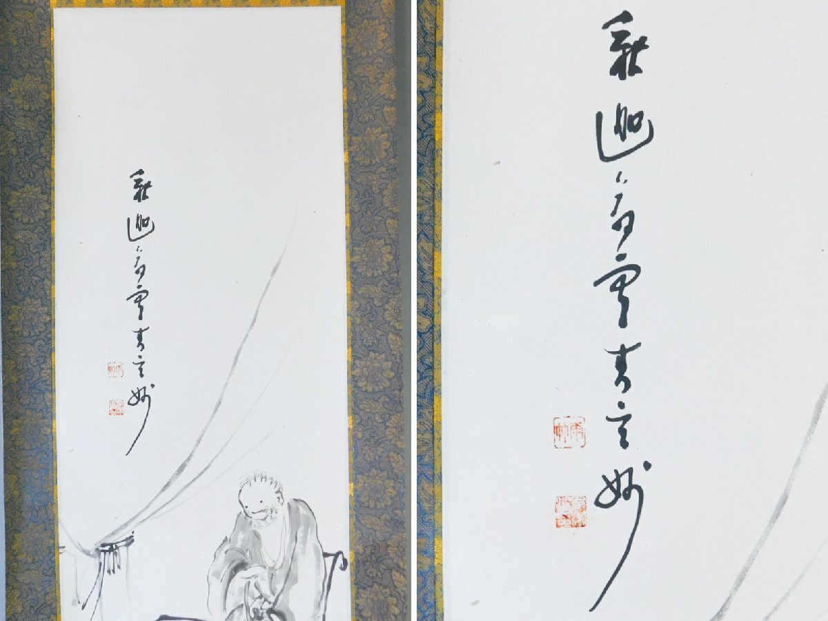 雨竹 印 高談醒闢我廻莚 釈迦夢室言玄妙 人物画 水墨 日本画 画賛 紙本 対幅 軸装 掛軸 専用木箱 OK7935