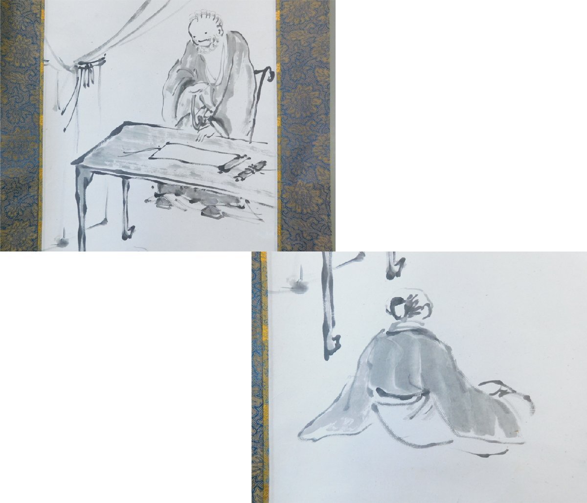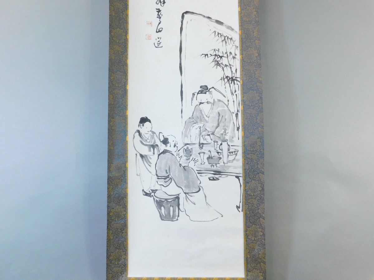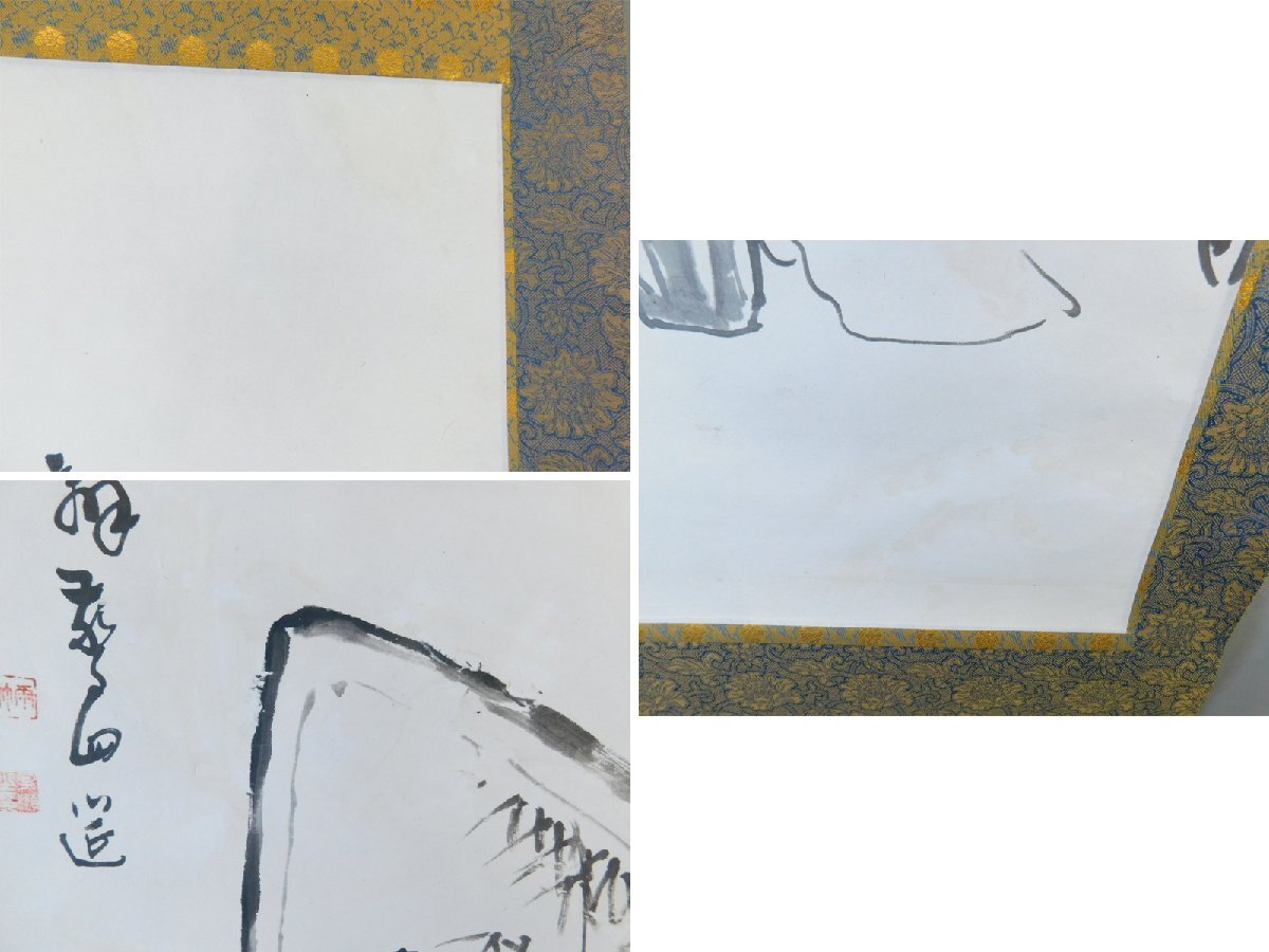 雨竹 印 高談醒闢我廻莚 釈迦夢室言玄妙 人物画 水墨 日本画 画賛 紙本 対幅 軸装 掛軸 専用木箱 OK7935