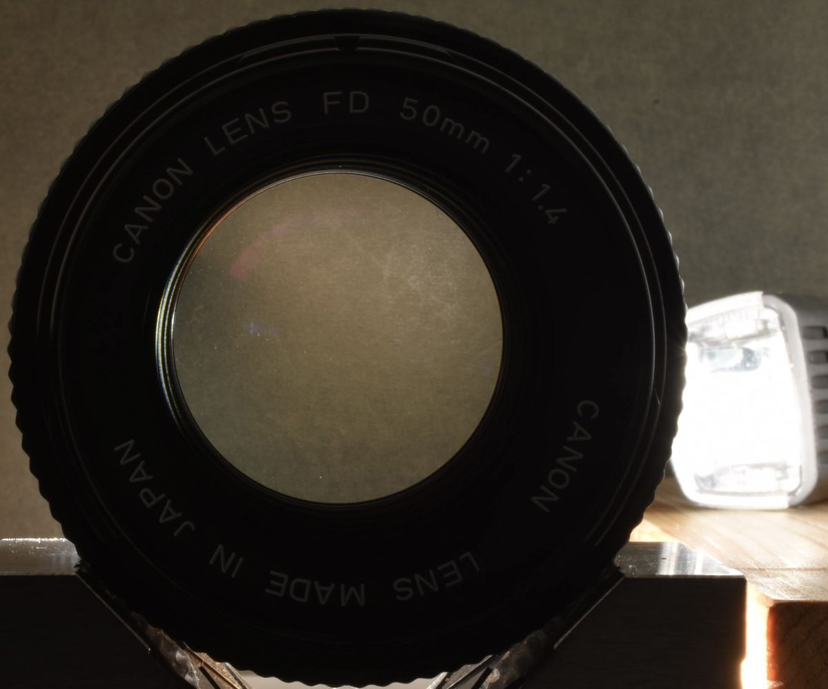 光学系:強烈なLED逆光ではオールドレンズにありがちな白い点が見られます。