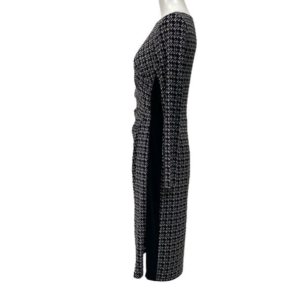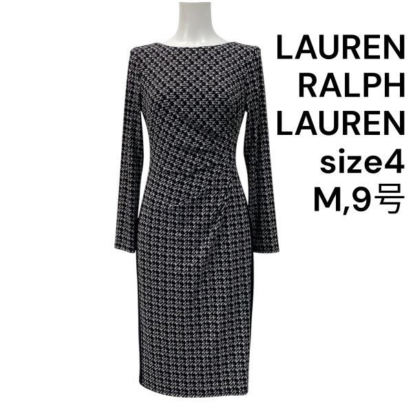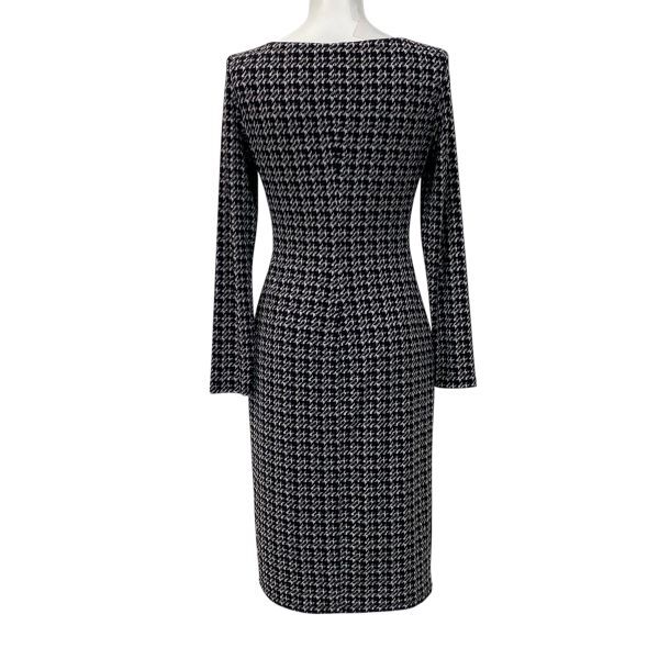 ロングワンピース 長袖 総柄 トップス タイト ワンピース ロング カットソー 千鳥格子柄 タックドレープ プルオーバー 伸縮性あり