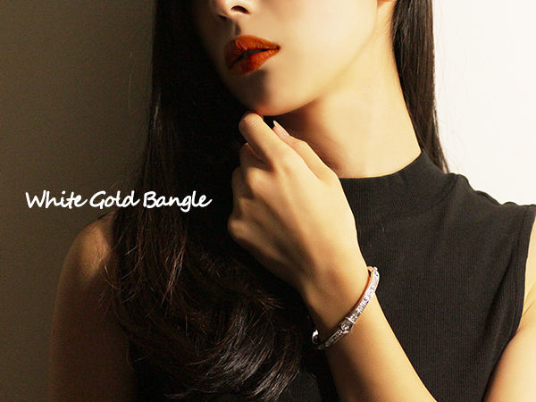 バングル ブレスレット レディース シルバー 18金 18kコーティング ホワイトゴールド ビス ベルト 女性 / K18GP CZダイヤ シルバーバングル