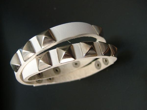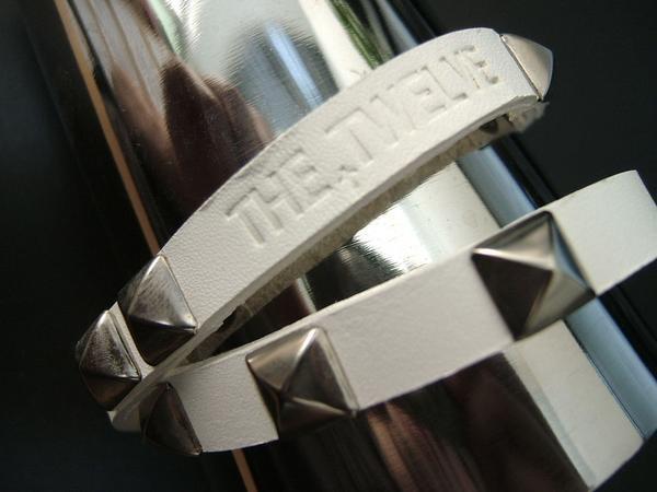 新品 THE TWELVE ザ・トゥエルヴ 本革 レザー 2連 スタッズ 白 バングル TORNADOMART