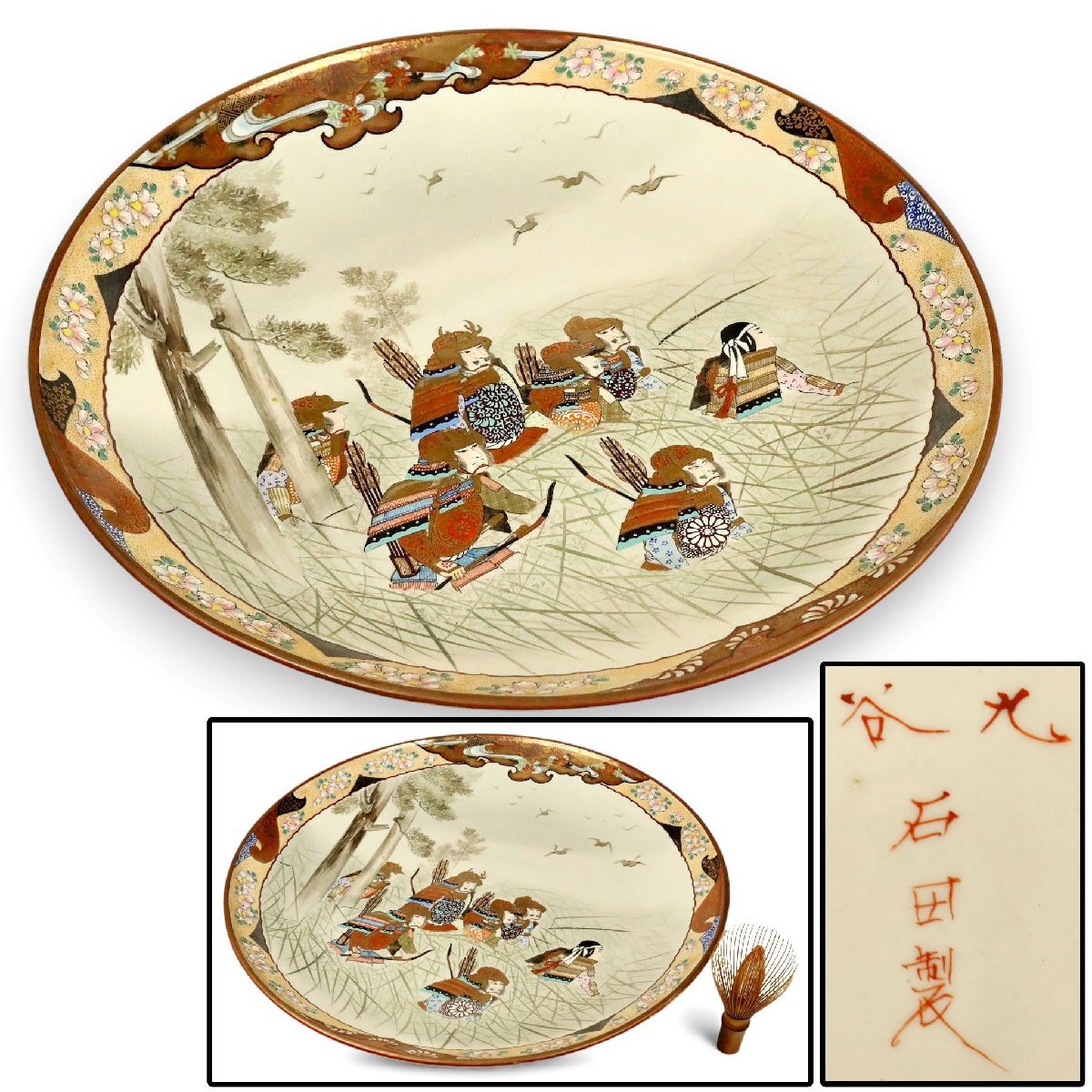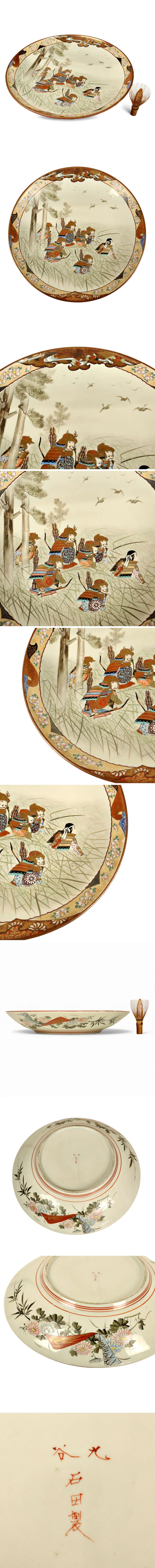 商品名 明治期 石田製 九谷焼 大皿 武者図 骨董品 古美術品
