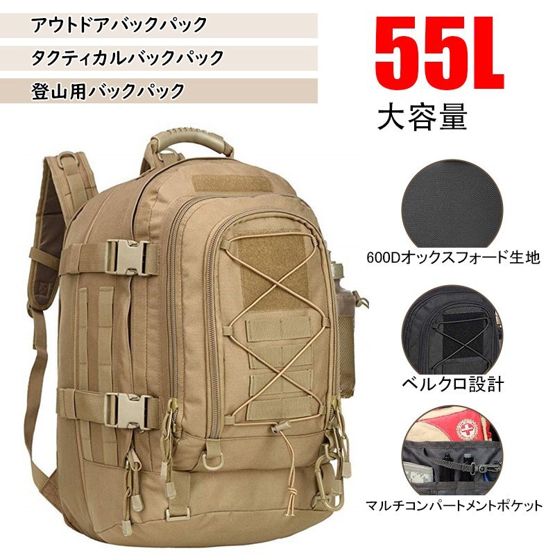 リュック バックパック 55L大容量バックパック 多機能 丈夫 頑丈 通学 登山リュック 旅行リュック 撥水 防災 カーキ 768.kq