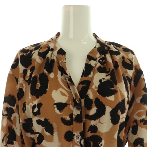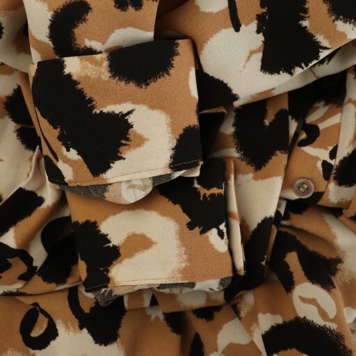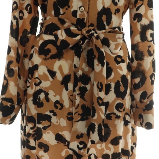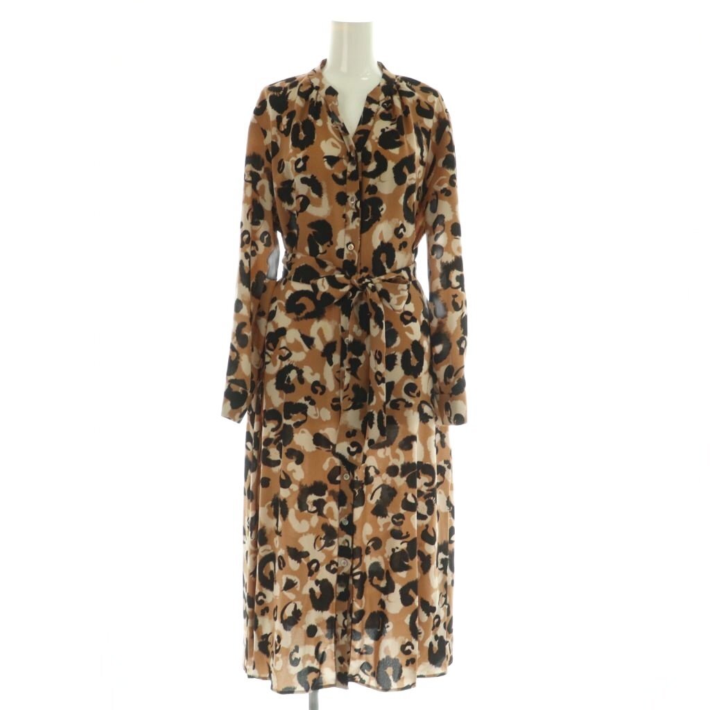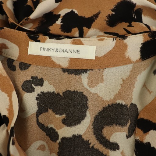 ピンキー&ダイアン ピンダイ PINKY&DIANNE アブストラクトアニマルプリントワンピース ロング 長袖 ベルト付 38 ベージュ
