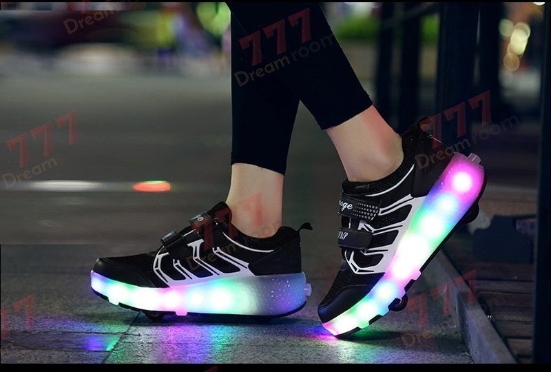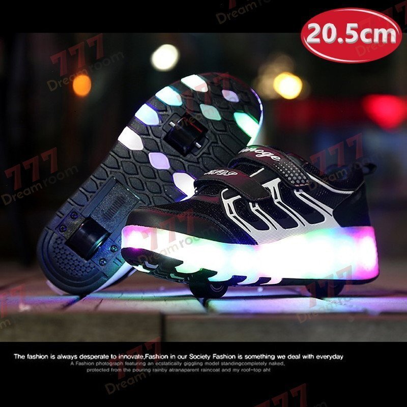 1スタ☆光る☆LED ライトアップスニーカー&ローラーシューズ 一体型 【K-373ブラック 20.5cm】夜間 スケート靴 反射材 ジョギング 自転車