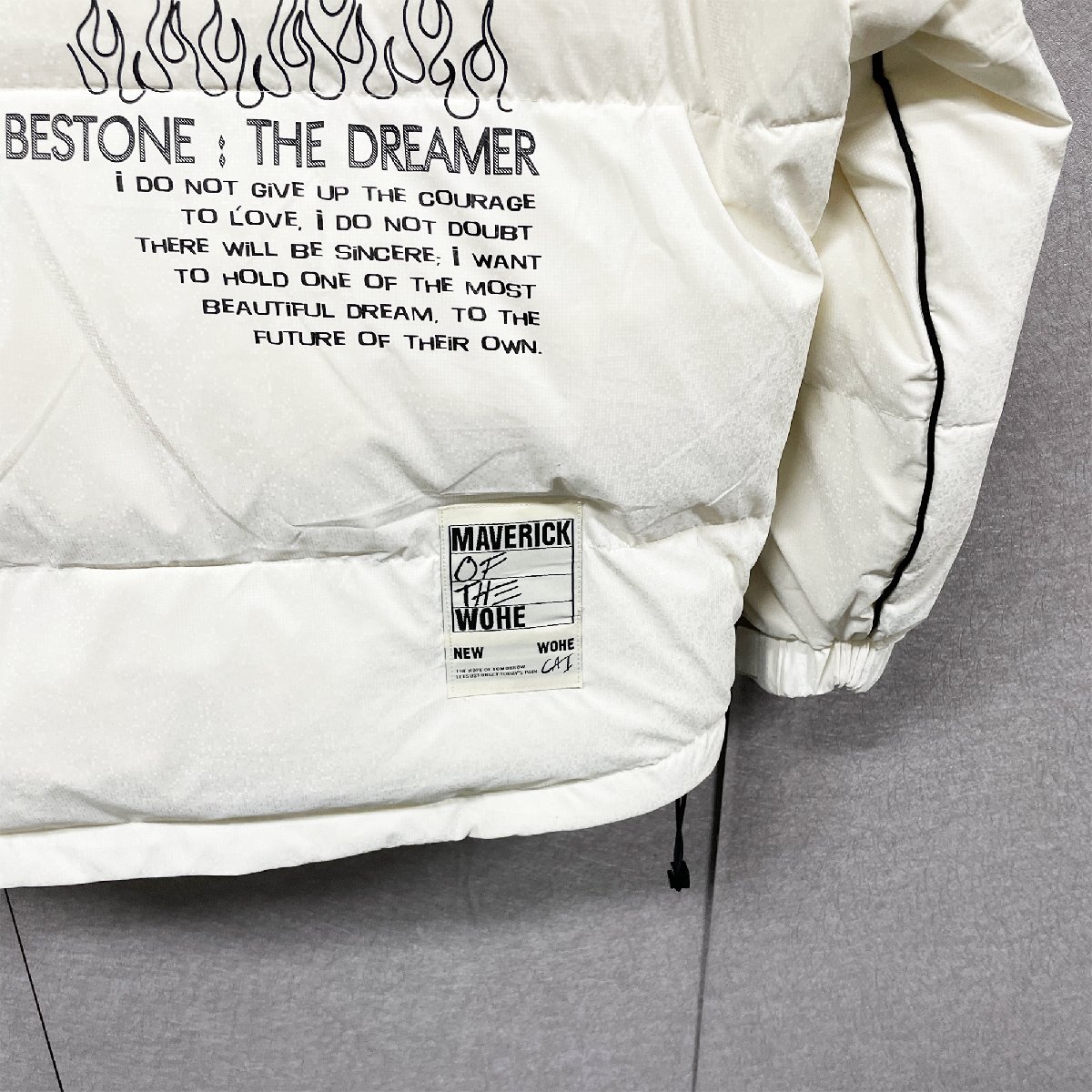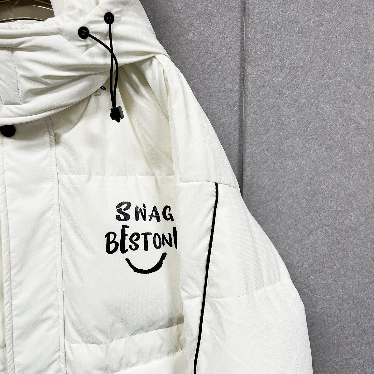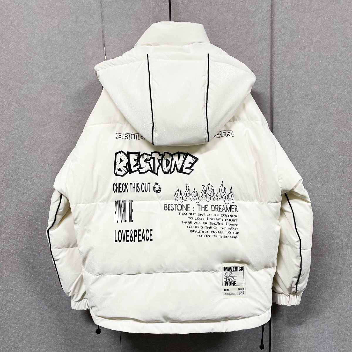 表面には特殊な素材を使用しており、光に当たるとキラキラと輝き、とても高級感が溢れています。胸元とバックにはクラシカルな英字プリントがデザインされ、おしゃれな雰囲気を醸し出し、エネルギッシュな印象で冬でも着用できます。ハイネックのデザイン&引きひも付きフードは、頭の保温効果が倍になります。前たてに丈夫なファスナーとスナップボタンの二重構造で冷たい空気を防ぎ、体を守ってくれます。デザインはシンプルの上に、実用性を重視し、大きいなポケットのデザインはお客様の収納ニーズを満たします。