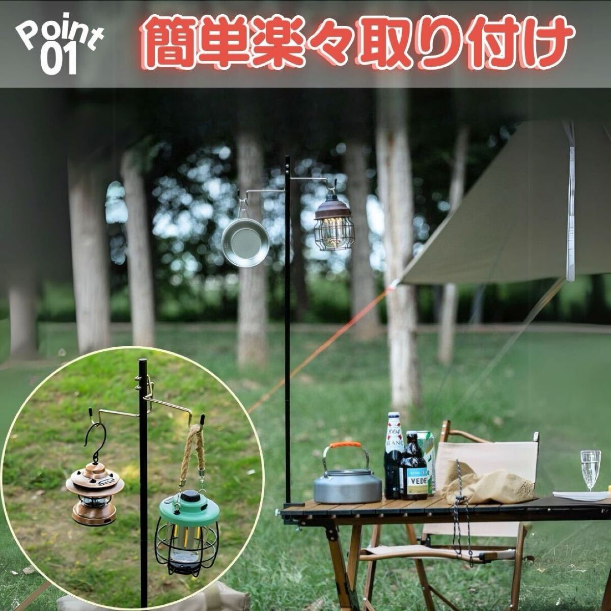 ランタンスタンド ダブルフック ランタンポール 折りたたみ 収納袋付き 軽量 コンパクト