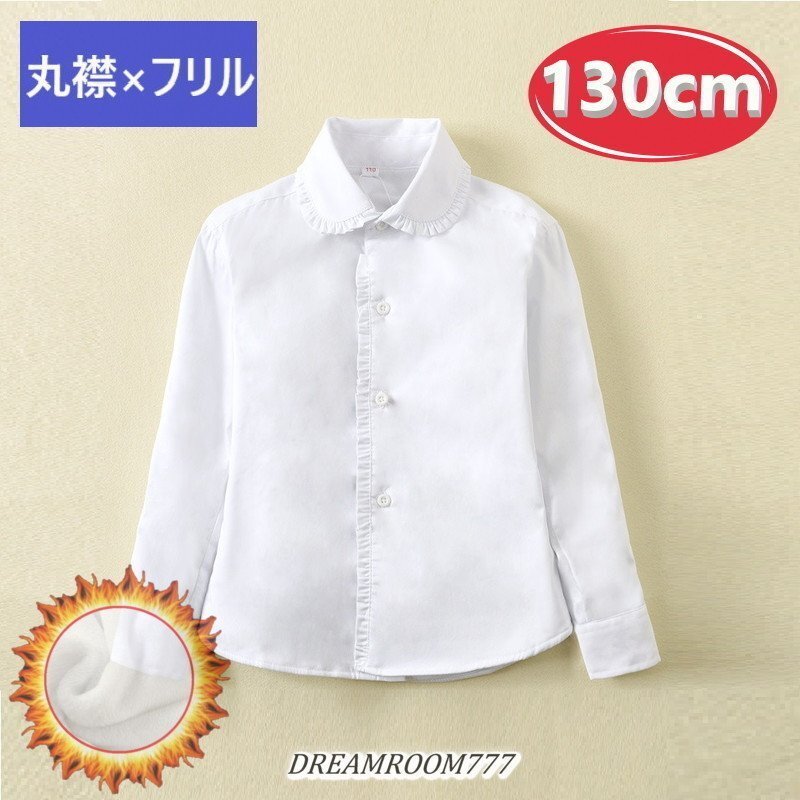 あったか~い!裏起毛★ 丸襟×フリル ブラウス【130cm】ワイシャツ 白シャツ 学生服 フォーマル 冠婚葬祭 制服