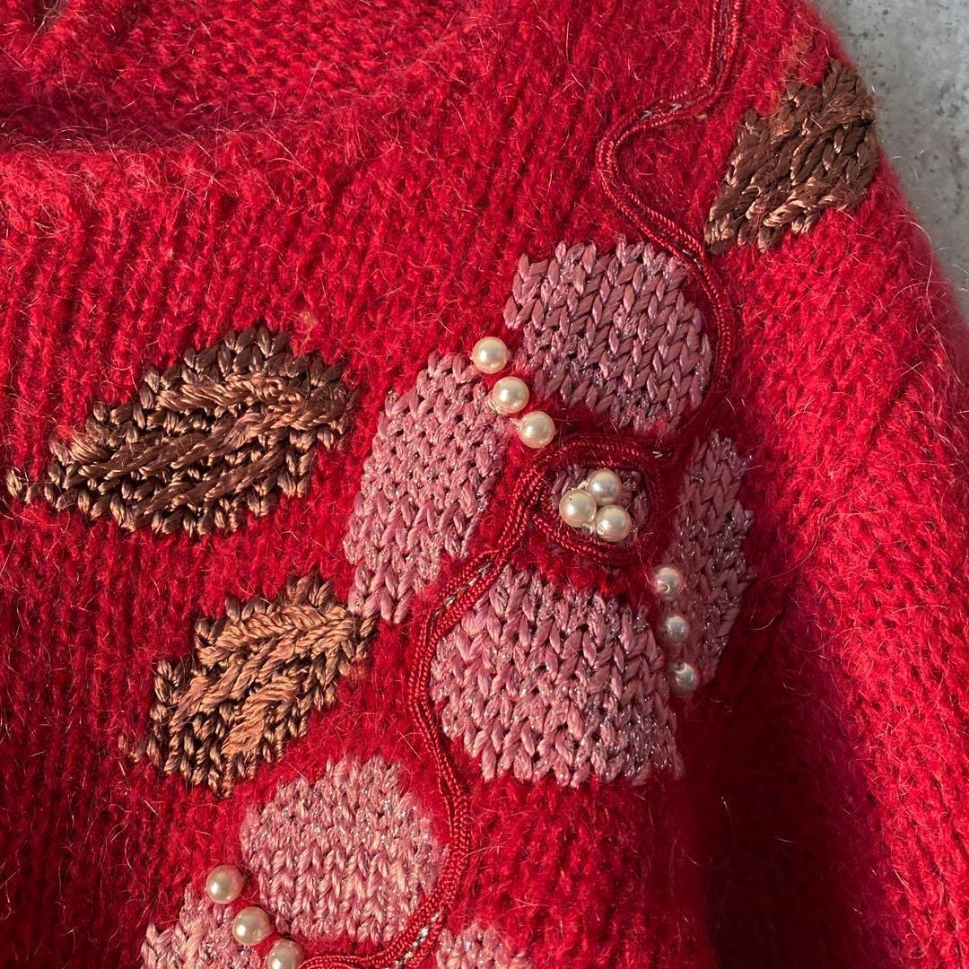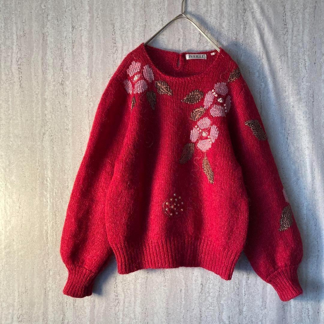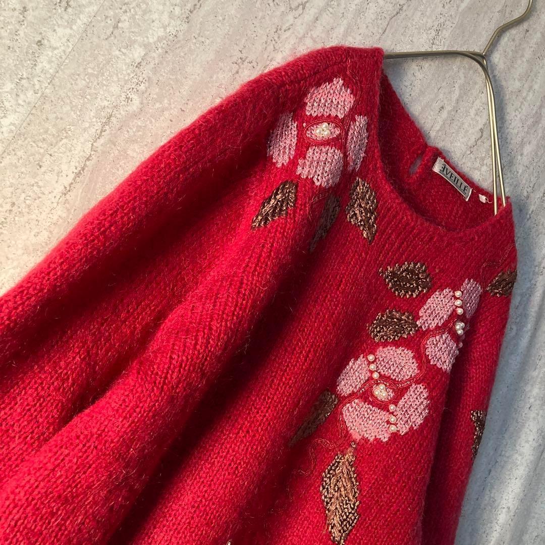 お花の刺繍にパールビーズの華やかで、とっても可愛いニット。