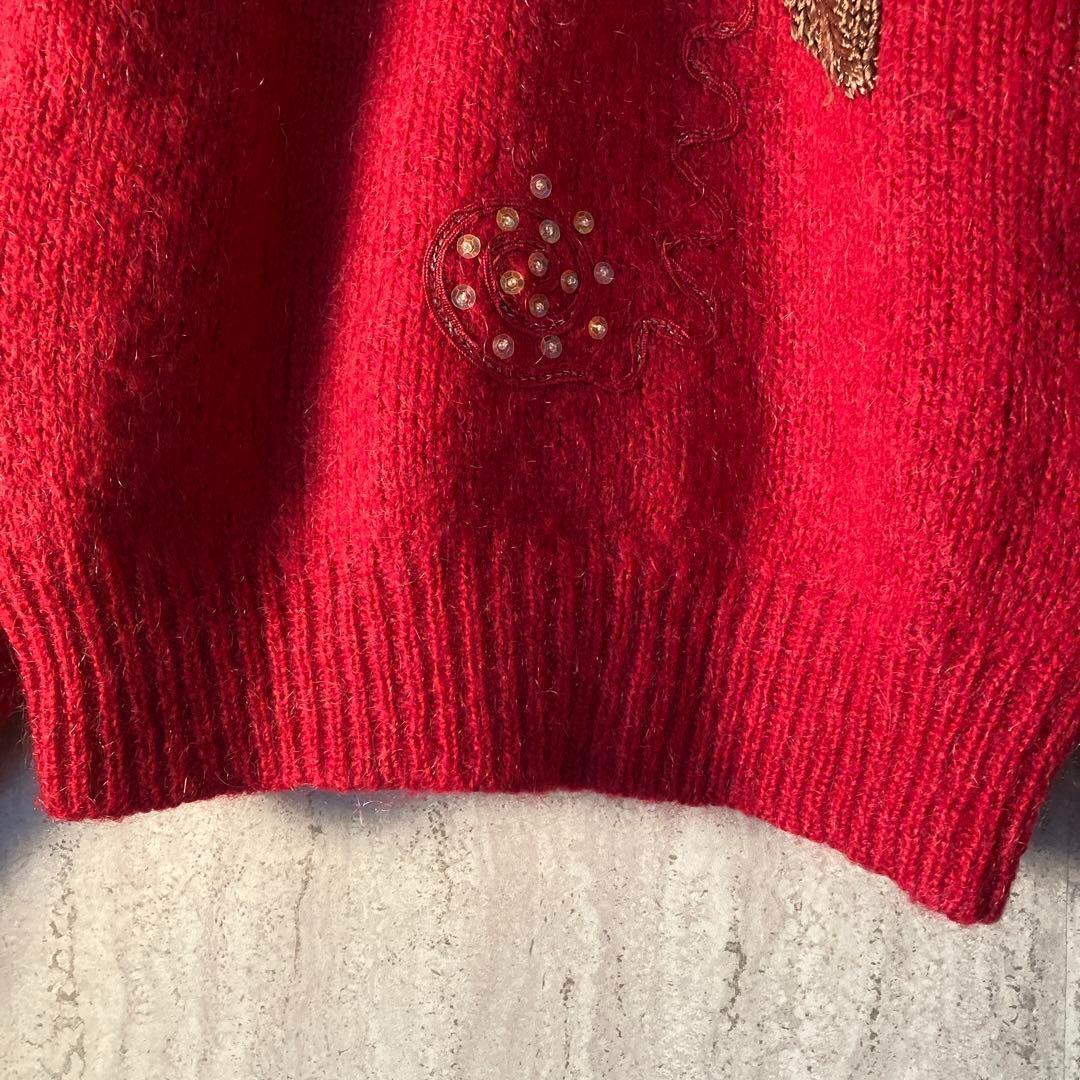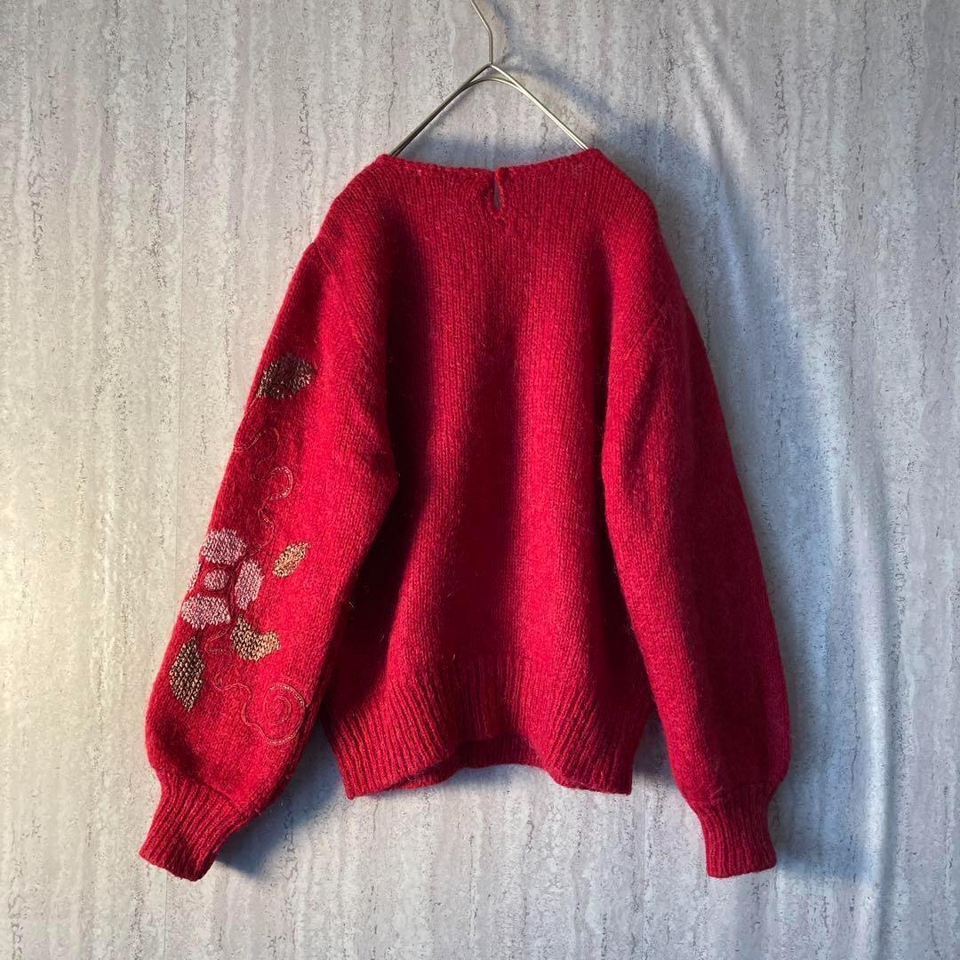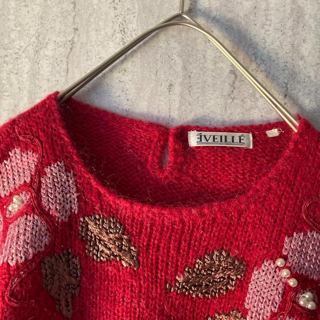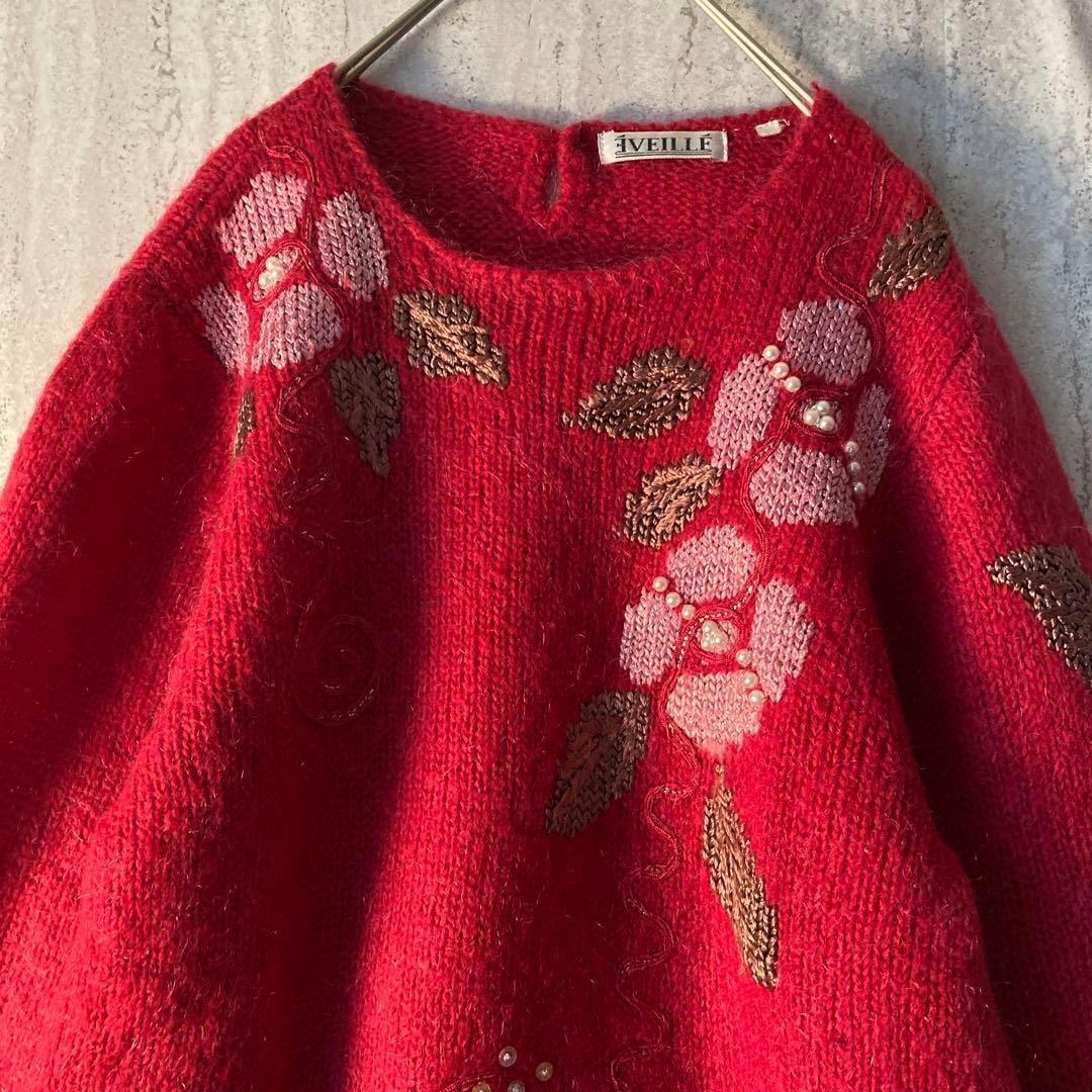 お花の刺繍にパールビーズの華やかで、とっても可愛いニット。