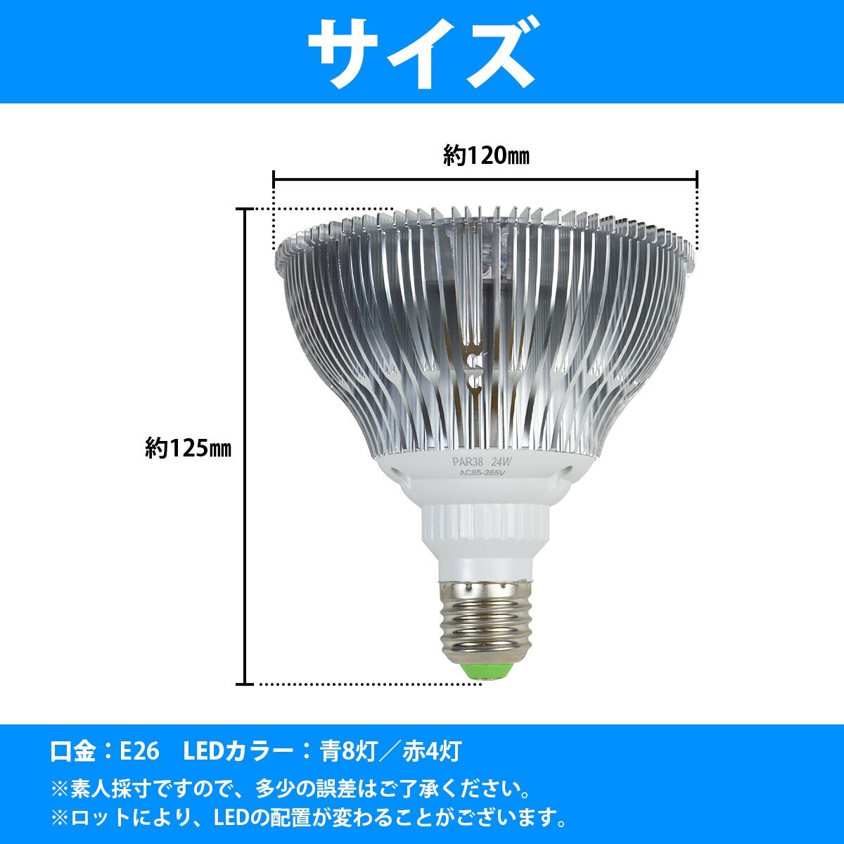 [青8/赤4] 24W(2W×12) 電球 E26 口金 水槽 用 照明 植物育成 スポット ライト 12LED アクアリウム 電球 水草 サンゴ 熱帯魚