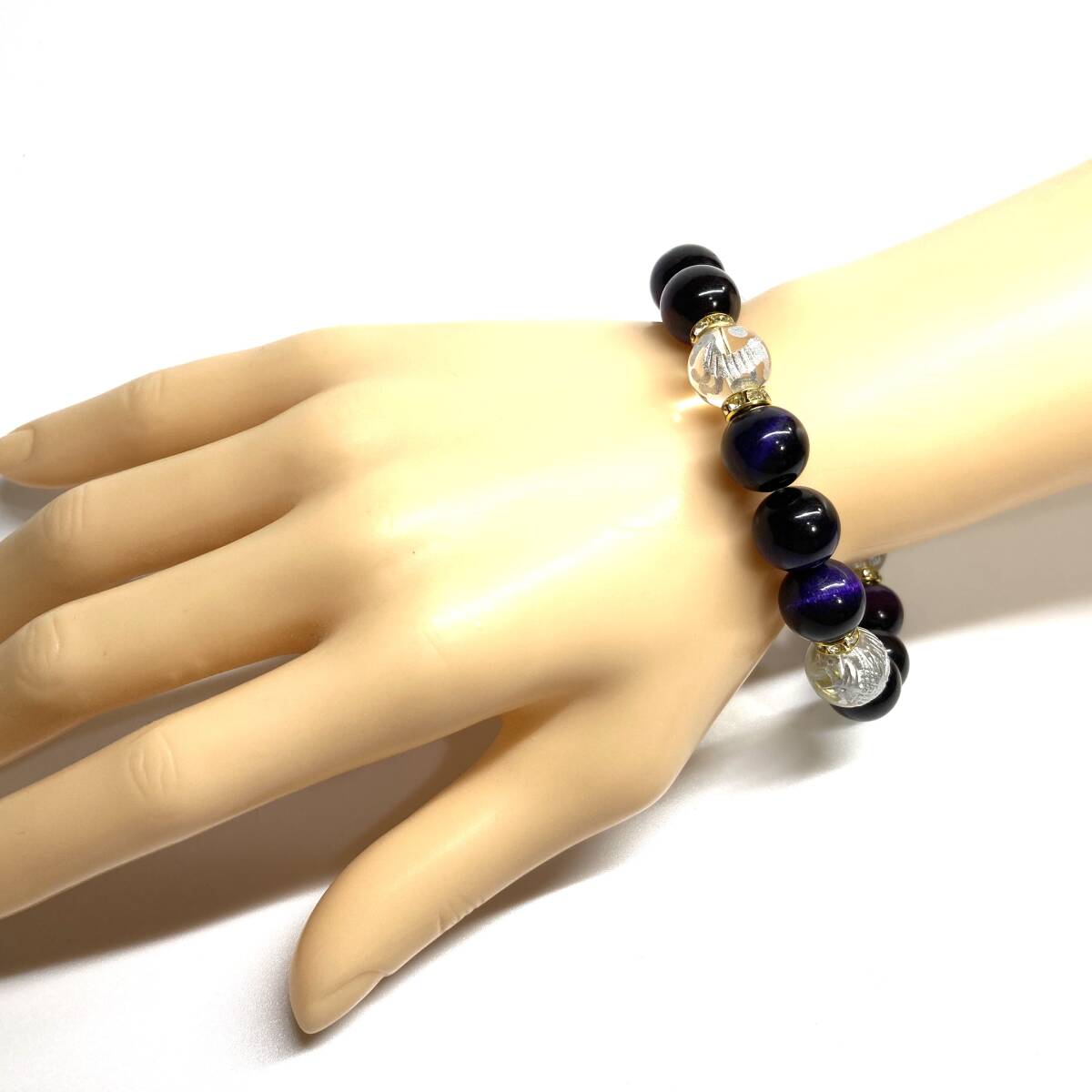 四神獣銀彫水晶×パープルタイガーアイ 12mm パワーストーン ブレスレット天然石 青龍 白虎 玄武 朱雀 運気上昇 お守り 四神獸 四神相応 G