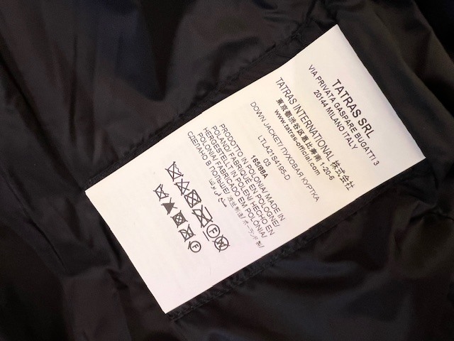 5年ほど前にショップで購入したタトラスのBREVA ブレヴァ/ライトダウンジャケット/サイズ3(L)/カラー黒(ファスナー・ロゴはゴールド)です。