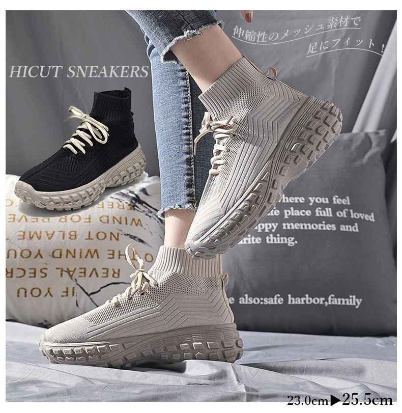 ・伸縮性のメッシュ素材で足にフィットし、お洒落なハイカットデザインです。
