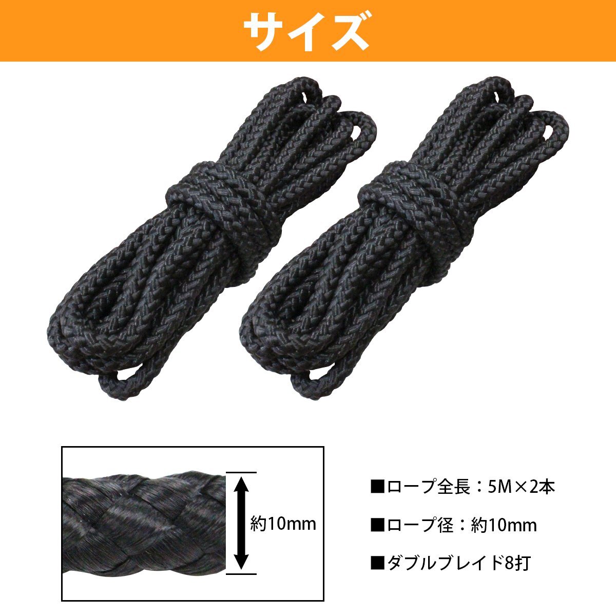 【新品即納】8打 10mm 5m 2本セット 計10m 係留ロープ フェンダーロープ ダブルブレイド 黒/ブラック マリン ロープ 船 係船 10ミリ