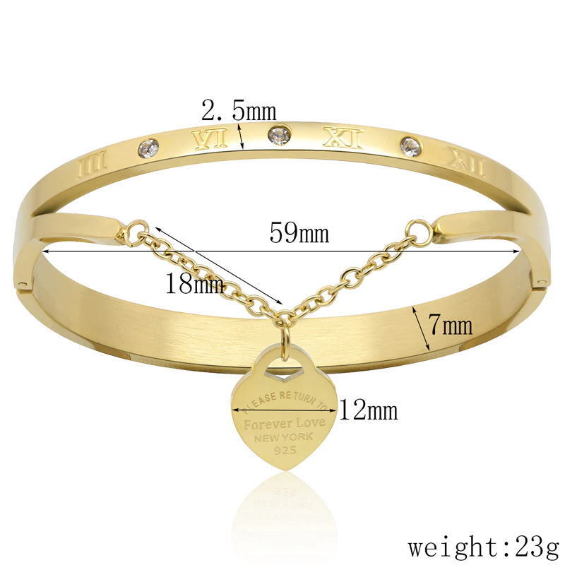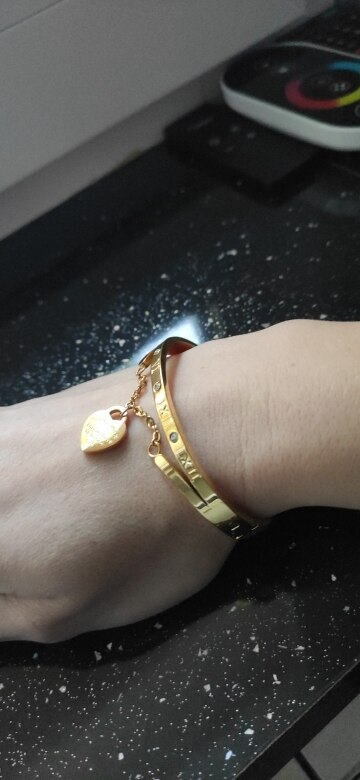 主役級k18色ゴールド ハートチャーム高品質ステンレスバングル★手元悩みに応える